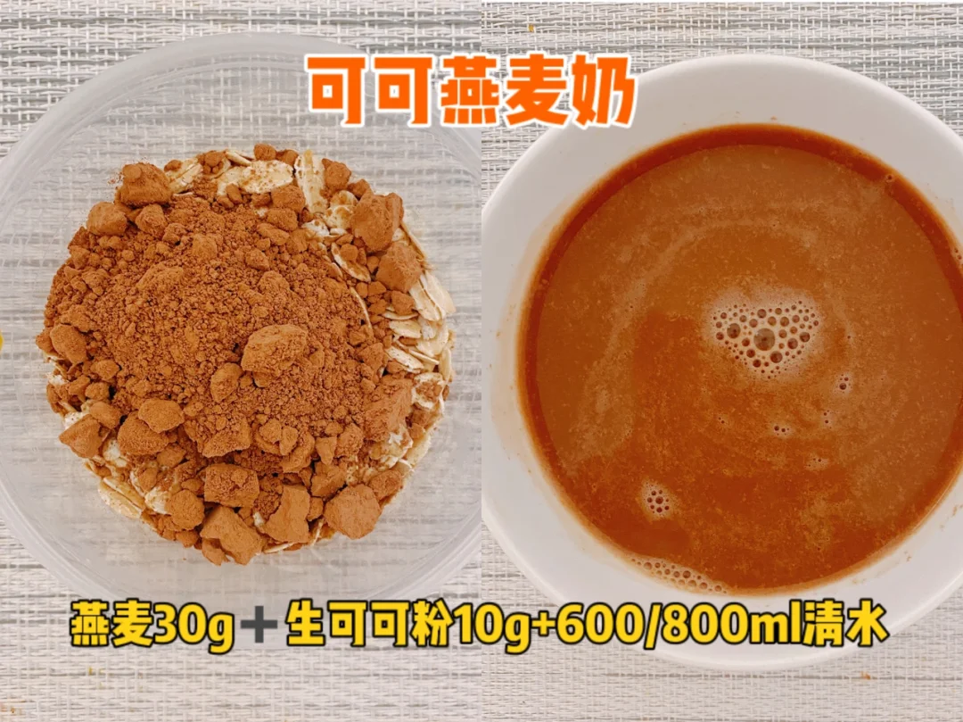 生可可粉10g➕燕麦30g➕清水600-800ml