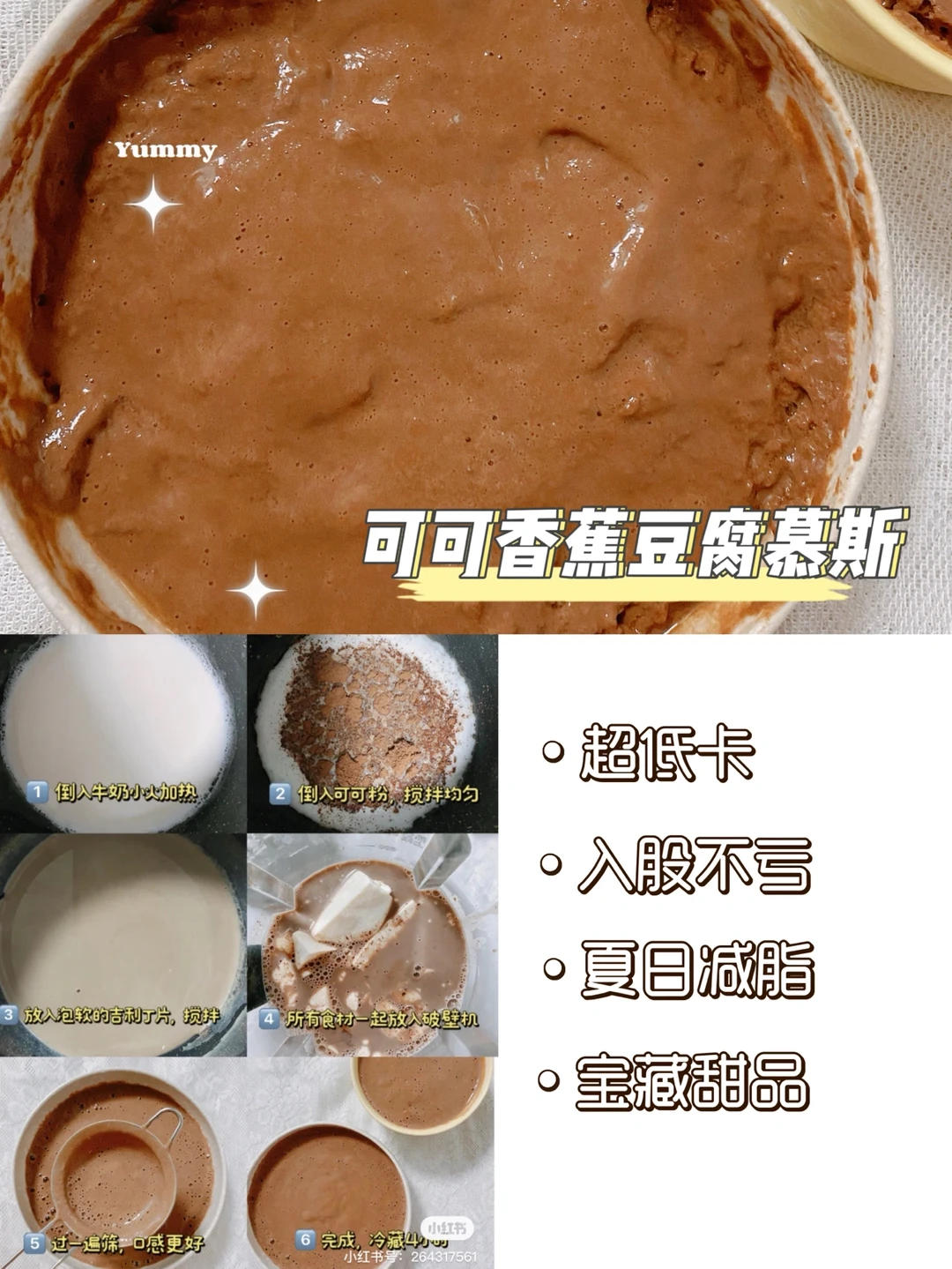 🥣食材:生可可粉10g|内脂豆腐200g|脱脂牛奶160-180g|香蕉70g|吉利丁片10g