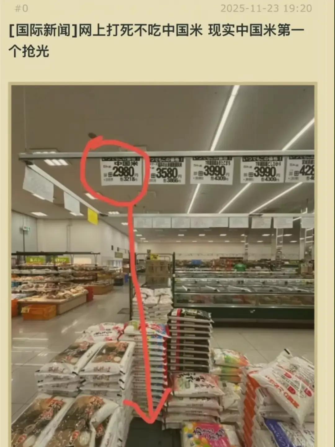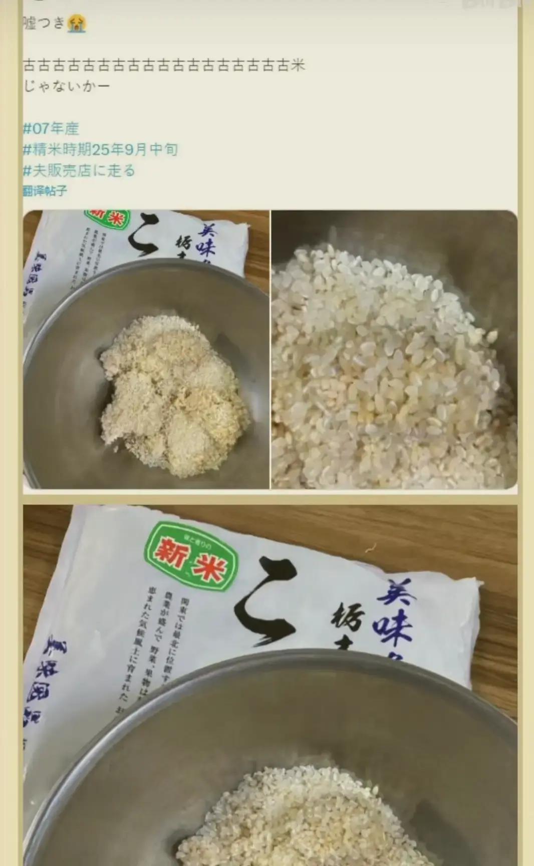快讯!快讯! 日本人这是把日本人当日本人整啊! 现在他们都吃陈米了,也就是日本人说的“古古古米”,那么这个“古古古米”到底指的是什么呢? 这是日本因米荒投放储备陈米后诞生的特殊命名,对应的命名规则很简单:存放一年叫“古米”、两年叫“古古米”,年份每增加一年就多一个“古”字,以此类推。 我在东京的朋友小林发来一段语音,说家门口那家超市开始限购大米,一人一袋,晚去就只剩最角落那两包带“古古古”标签的陈粮。开袋那味道一出来,老妈皱了下眉,但还是默默盛了第二碗。嘴上不服,筷子很诚实。 更有意思的是,平时朋友圈里喊着不碰中国米的人,这两周排队抢的,恰恰是写着东北产区的那几款。理由很简单:好吃一点,便宜不少。本土普通米一袋动辄四千多日元,高端的七千开外,进口里中国的那几款三千出头,算下来一顿饭省下来的钱能多买一盒鸡蛋。这不是立场,这是算账。 为什么会走到这一步?一是极端天气多,去年夏秋高温叠加暴雨,稻谷成熟不均,收成和品质双跳水。二是库存轮换慢,规定在那摆着,真到要用的时候发现仓里“古”字越来越长。三是物流、汇率、能源成本一起抬头,运到货架上就更贵了。等市场反应过来,只能把应急米推出来顶着先用,苦的就是普通家庭。 我不觉得这件事只是笑谈。粮食安全不是演习,关键是制度要落在地上:轮换要真轮,标识要透明,价格别靠噱头。我还看到有人爆料,有商家给陈米换个包装,写上“精选调和”,价格不降反升,这就不厚道了。你卖陈米可以,标清楚年份和比例,别玩文字游戏。 接下来会怎样?要么增加进口,把缺口先补上;要么拿补贴托一下终端价格;再慢一步,明年新米季节前还可能再紧一轮。对消费者来说,产地是情感,口感是体验,价格是现实。在锅里咕嘟的那一刻,能让一家人好好吃饭的,才是好米。 换位想想,如果只有“古古古”和“东北新米”两种选择,你会选哪个?在键盘上表态容易,在收银台做选择更真实。别急着嘲讽谁,今天他们的米荒,明天可能是我们的别的东西。稳供应、稳预期,才是对每个普通人的保护。 你买大米最看重什么?价格、口感还是产地标签?评论区说说看。古古米 日本米荒 消费观察