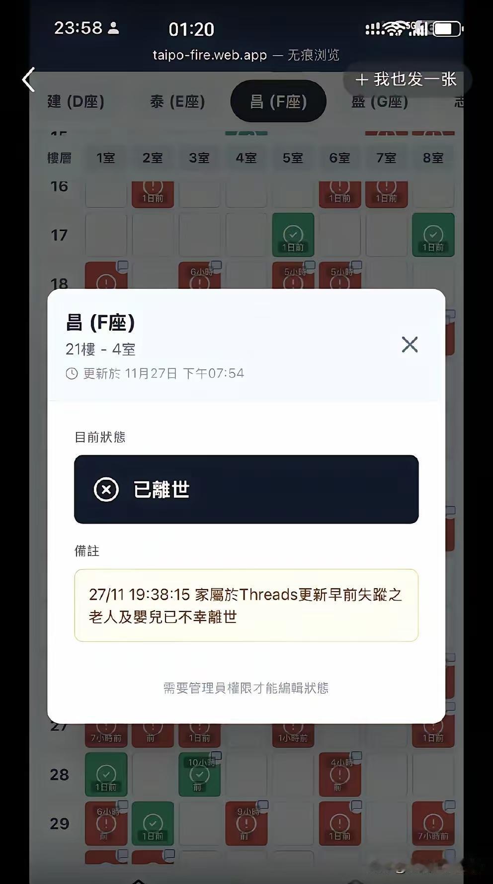 太令人窒息了!香港大埔宏福苑死伤人数还在增加。昨天看新闻,里面的人告诉外面的,得知火灾时已浓烟滚滚,就十分钟的事,走不了,看不清。 建筑业已经发展几百上千年了,发生这种火灾,严格来讲不是说不应该发生,而且绝对不会发生才对,特别是这种极度发达的地区。 网上有视频,开始一点点火,才几分钟蔓延得快。从下往上烧,真的很快。 这也是百年一遇的人为灾祸了,不知道香港历史上还有没有超过这次的。 一个小区,又是小户型。可怜的孩子,还没来得及好好看世界。