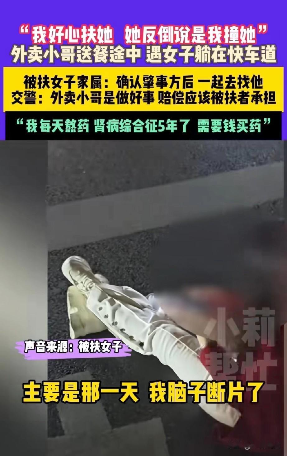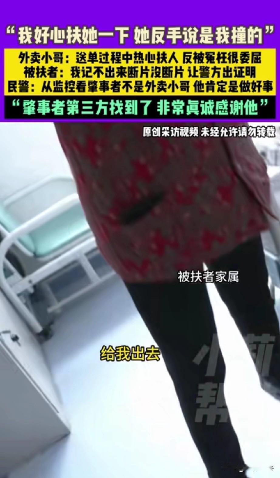 河南郑州,外卖小哥送餐过程中,看到一满身酒气的女子受了伤倒地不起,小哥心善,二话不说将女子扶起并送往医院,可万万没想到,事后,女子及其家属不但不感谢他,还一口咬定是他撞的。热心扶人却被冤枉,小哥一肚子委屈,找到女子讨要说法。谁知女子表示:我记不起来断没断片,你说不是你撞的,为什么警方不给你出证明。说着,还把他往并非外推。小哥实在咽不下这口气,立刻报警,结局大快人心。 小刘是一名外卖小哥,事发当晚,他骑着电动车忙着送餐时,远远地看见昏暗的路边躺着一个人。 这么晚了,这人怎么躺地上,喝醉了还是受伤了?他下意识地减慢了车速,慢慢靠近。 结果靠近一看,发现地上躺着的是一位女子,她一身酒气,看样子是喝了不少,而且,还受了伤,痛苦地动弹不得。 这年头,看到这种情况很多人都避之不及,生怕被讹上。 但小刘心善,想着天那么冷,女子又受了伤,要是冻时间长了女子身体肯定受不了,于是,他赶紧蹲下身询问。 看情况危急,小刘一心想着救人,顾不得多想自己的订单会超时,赶紧小心翼翼地将女子扶起,送到附近的医院。 但让他万万没想到的是,他最担心的事情还是发生了,好心的帮忙却成了噩梦的开始。 当他帮着挂号、联系家人,忙前忙后的时候,刘女士和家人竟然一口咬定,人就是他撞的。 这简直是晴天霹雳,小刘瞬间懵了,自己好心帮忙,怎么就成了肇事者?电视剧里的情节竟真的发生在了自己身上。 这事搁谁身上谁不难受,小刘心口被赌得发慌,为了证明自己的清白,他不但报警,还向记者求助。 他和记者一起来到了刘女士的病房,想找对方协商解释清楚。结果,让他心寒的事情再次发生,刘女士的家属竟然情绪激动,推搡他们往外赶。 面对记者和小刘的质疑,病床上的刘女士态度很强硬,她说,自己记不起来断没断片,具体情况让警方出证明。 她还质问小刘:既然不是你撞的,你咋没有让交警出证明呢?我也是有头有脸的人物。 因为警方还没有找到肇事者,所以小刘百口莫辩,真是哑巴吃黄连,有苦说不出。 那撞刘女士的到底是不是小刘呢?真相究竟如何? 幸运的是,警方经过细致的调查,通过调取路边监控,很快查明了真相。 视频清晰地显示,肇事车辆另有其人,外卖小哥小刘,千真万确是在看到事故发生后停车、下车、救人,是热心帮忙的,绝不是肇事者。 后来,在民警的不懈努力下,真正的肇事者也找到了。 铁证如山,真相大白,得知自己冤枉了救命恩人后,刘女士也深感愧疚。 她亲自给小刘送去了锦旗,诚恳地表达了歉意,并支付了1500元的赔偿金,算是尽力弥补。 这事儿虽然最终水落石出,小刘也洗脱了冤屈,但不少网友看完过程都忍不住表示:一句误会就完事了?幸亏找到了肇事者,要是没找到,那小刘不就真成了冤大头,背锅侠吗? 如果没有监控,那小刘可就真从救命恩人变成了罪魁祸首,好人的心可真被寒了。 从法律角度,应该如何看待此事? 1. 小刘的救助行为适用“好人条款”,无需担责 依据《民法典》第184条:因自愿实施紧急救助行为造成受助人损害的,救助人不承担民事责任。 这一条款即“好人条款”,核心是打消见义勇为者的顾虑。 本案中,小刘看到刘女士受伤倒地后,主动停车将其送往医院,还帮忙挂号、联系家人,属于典型的自愿紧急救助行为。 即便刘女士未找到肇事者时咬定小刘是肇事者,在无任何证据证明小刘存在侵权行为的情况下,小刘本就无需承担任何赔偿责任。 且监控最终证实小刘无任何过错,其救助行为更应被肯定和保护。 2. 刘女士的行为构不构成诬告陷害罪呢? 《刑法》第243条规定:诬告陷害罪,要求行为人主观上有捏造事实、使他人受刑事追究的故意,客观上实施了虚假告发行为且情节严重。 本案中,刘女士因醉酒断片,无法记清事发经过,其咬定小刘是肇事者,更多是基于错误认知的错告,并非刻意捏造犯罪事实,不符合诬告陷害罪的主观构成要件,因此不构成该罪,无需承担刑事责任。 但是,刘女士在病房中强硬指责小刘,其家属还推搡小刘和记者,该行为在一定范围内对小刘的名誉造成了负面影响。 好在,后续刘女士主动送锦旗道歉,并支付1500元赔偿金。 这属于对小刘名誉权受损及产生的误工损失等进行的合理民事弥补,符合民事侵权责任中赔礼道歉、赔偿损失的承担方式。