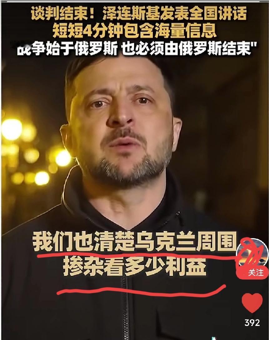 泽连斯基对时局的判断是准确的,脑袋关也是清醒的,但事情却往坏的方向发展。 俄乌冲突之所以走进死胡同,许多事情泽连斯基是无法作主的,身不由己或被人左右是当下泽连斯基的处境。 之所以俄乌冲突看不到和平的曙光,原因在于各种利益关系没有找到平衡点。 我们强烈反对战争,但俄乌冲突既然由大炮开始,那就由大炮来结束吧。