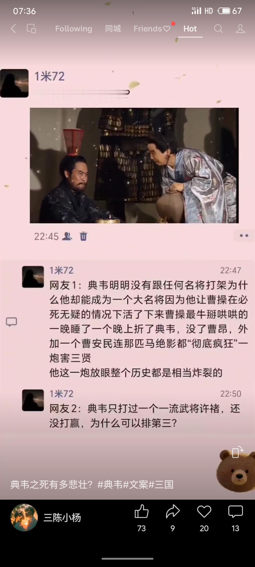 典韦因舍身护卫曹操而死,其牺牲极为惨烈,故被追认为名将;然其生前与名将交锋记录有限,实际战力常受后世质疑。