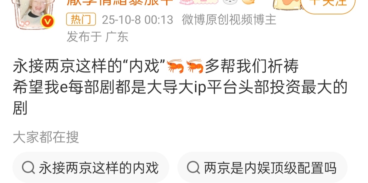 IE家怎么每个剧都要维权,又是jb又是打电话的。之前可是很满意两京的 威亚是欢瑞的,两京又是内戏。维权也是打自己人