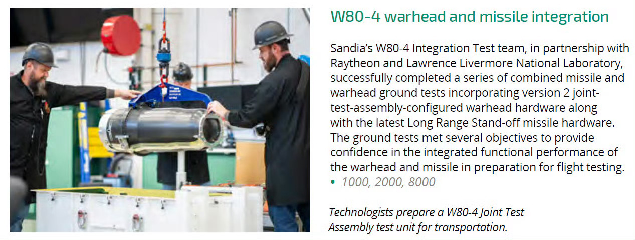 美国国家核安全管理局(NNSA)表示,它提前18个月完成了 W80-4 弹头关键组件的研制。首个 W80-4 延寿计划(LEP)“罐式子组件”(CSA) 的生产件已在田纳西州橡树岭的 Y-12 国家安全综合体完成制造、认证并通过验收。NNSA 于 9 月 22 日举行了纪念仪式。CSA 是两级氢弹弹头中的 第二级,用于提升武器的最终当量。每天认识一件兵器烽火问鼎计划 W80-4 是为MD二等人新型AGM-181“远程防区外巡航导弹”(LRSO)配套的翻新弹头,二等人的B-52轰炸机、包括未来的诺斯洛普·格鲁曼B-21“突袭者”轰炸机都将携带 LRSO,以替换服役数十年的AGM-86B“空射巡航导弹”(ALCM,携带W80-1 弹头)。预计首个完全组装完成的 W80-4 弹头将于 2027 年前生产出来,早于二等人原计划。NNSA 将 CSA 提前完成视为加速美国核现代化进程的一部分,此前美国核武器计划长期存在延期和成本上升问题;许多 1970–1980 年代制造的武器如今需要进行大型升级。