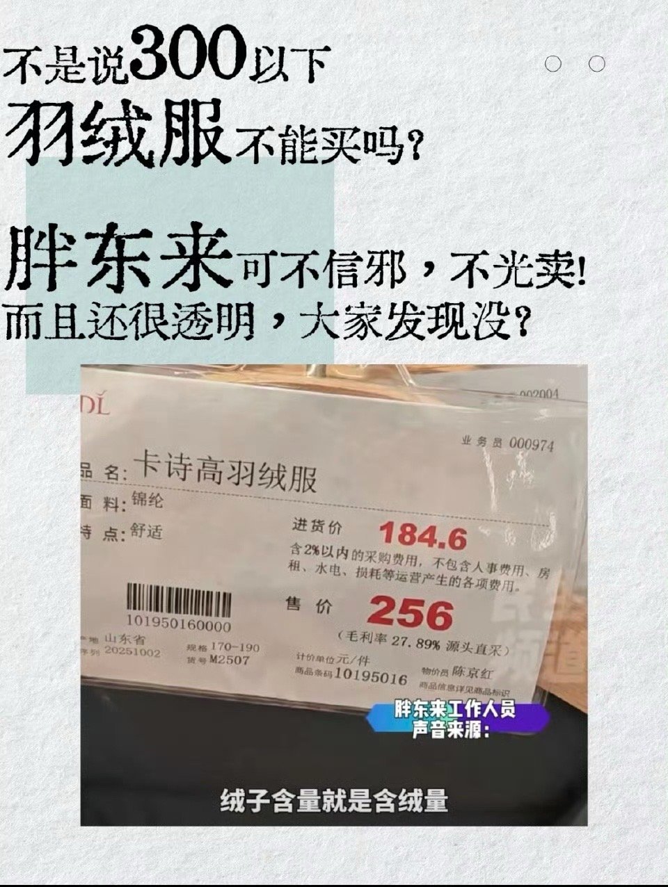 胖东来羽绒服进价430卖价597 明码标价头一次见那么有良心的