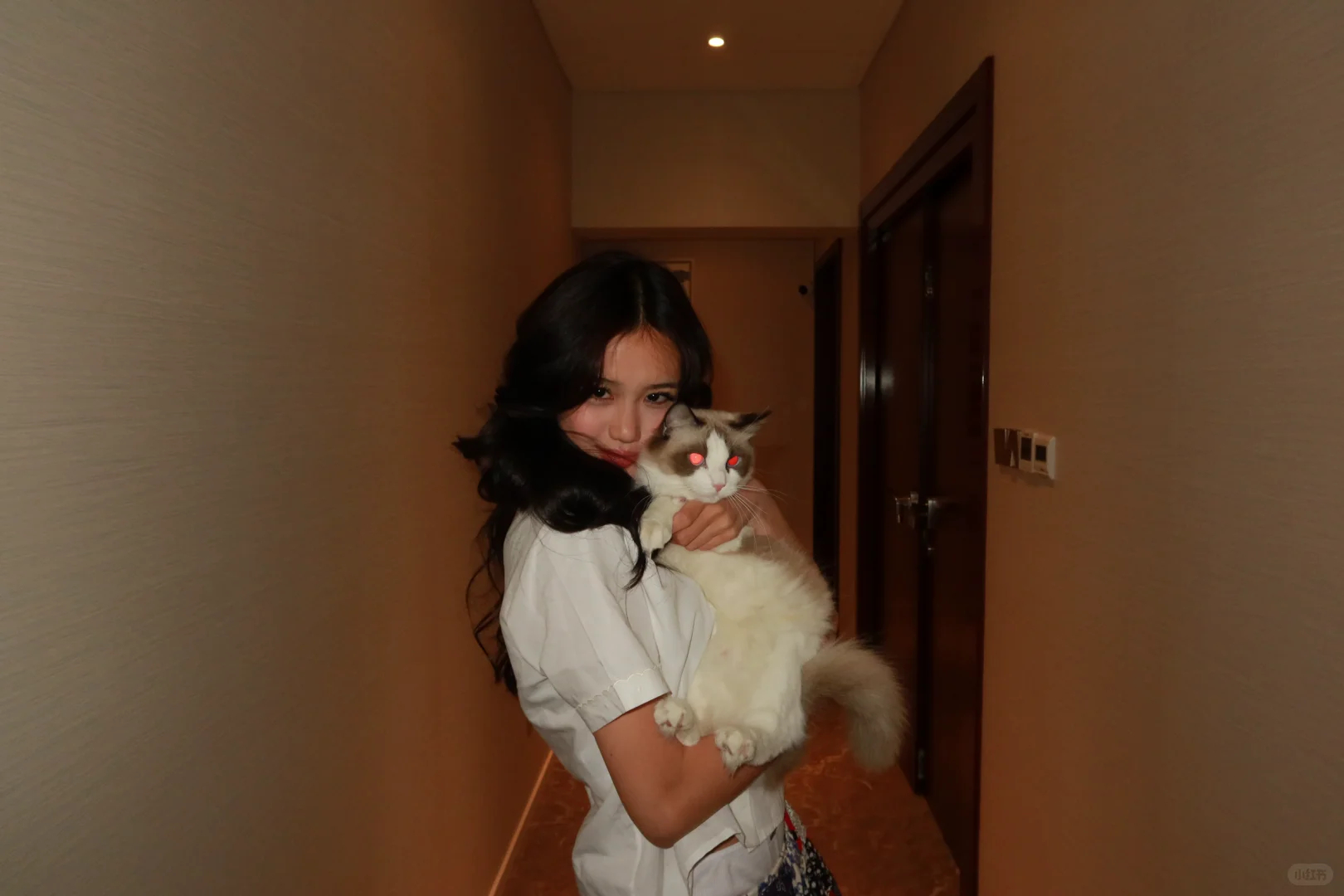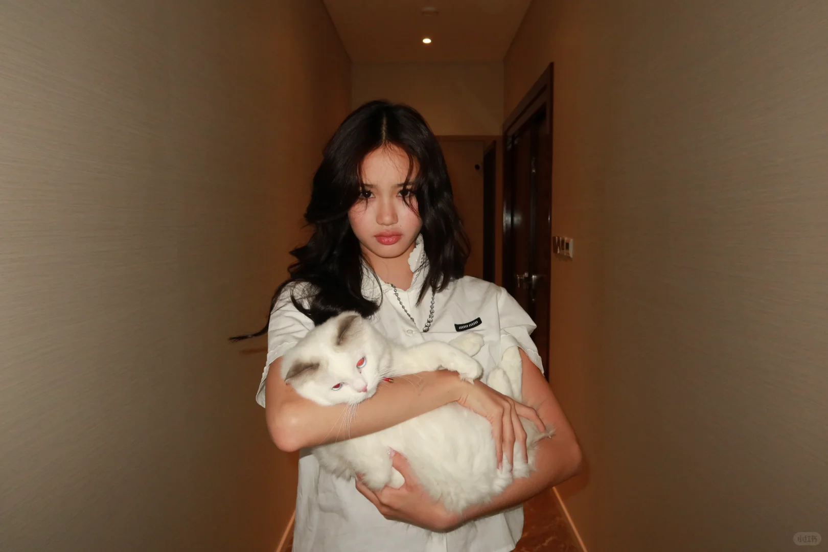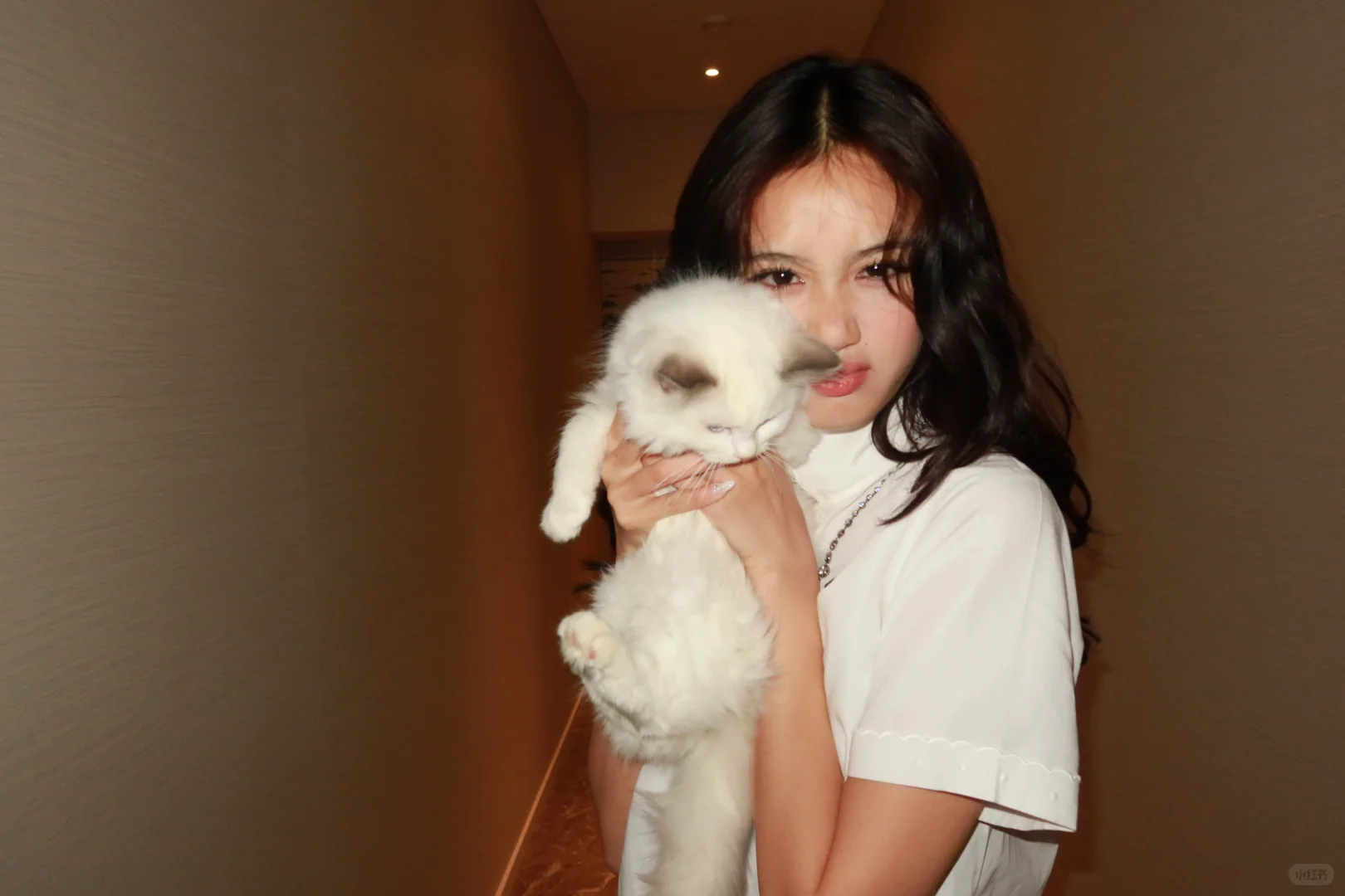 钟丽缇三女儿Cayla和家里的猫,两只都可可爱爱。