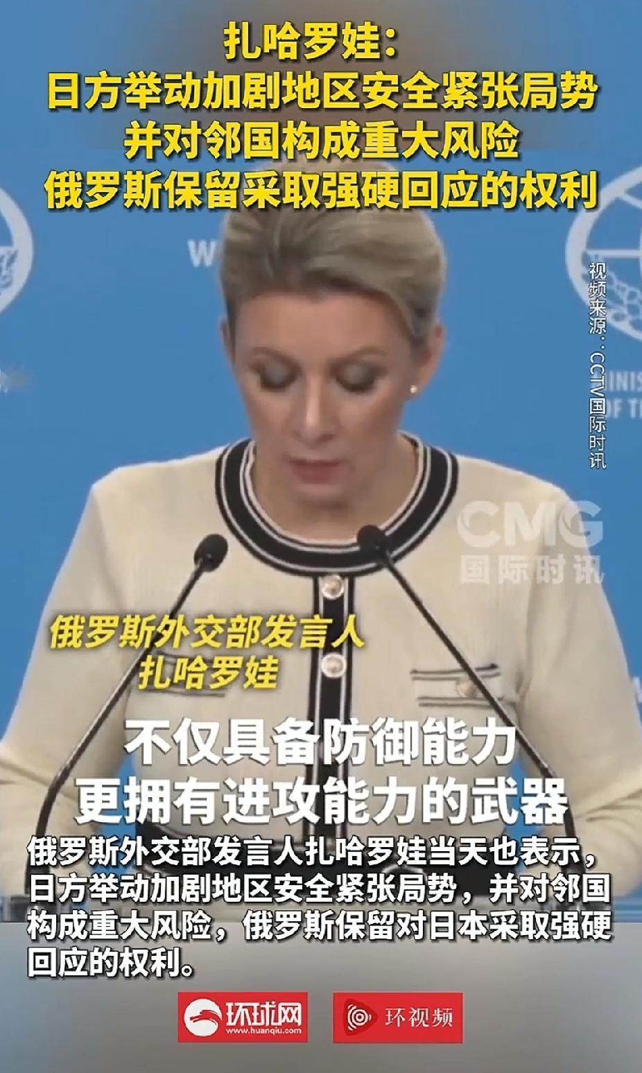 俄罗斯首次正式强硬表态,在日本问题上和中国站在同一条战线上。 关键点:1对邻国造成重大风险,2保留强硬回应的权利。 中国是日本邻国,俄罗斯也是。 俄罗斯的话说得很强硬,而且也作出了实际动作,前两天俄罗斯太平洋舰队已经在千岛群岛进行了军事演习。 将来如果日本进一步突破无核三原则,可能会让大家达成一致意见,包括美国,为了防止日本军国主义复活,要解除日本武装,最终琉球会复国,日本会被重新分割。 现在就看日本如何作死吧。 点右上角关注我,我们一起去看这个魔幻的世界