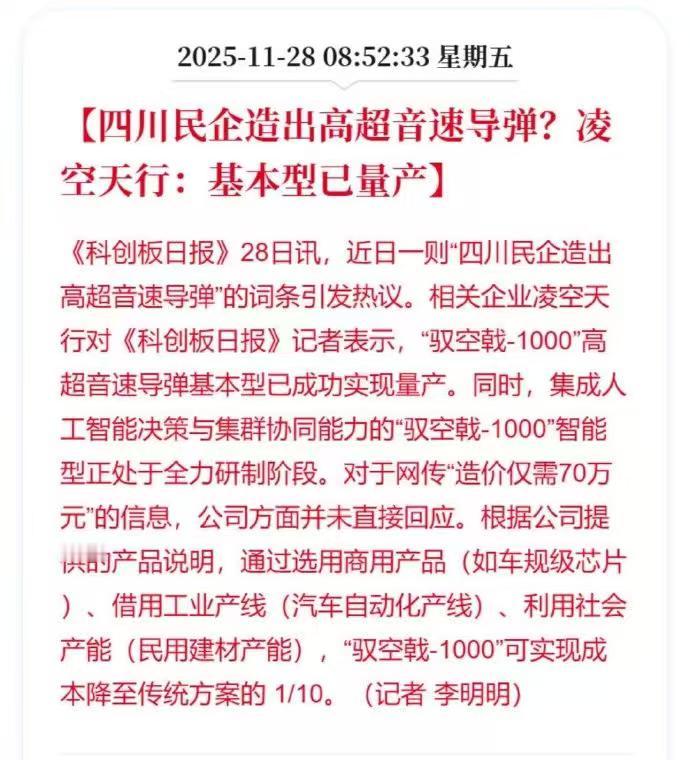 驭空戟-1000”可实现成本降至传统方案的 1/10。 之前还有个面条厂造飞机的, 这是要干啥,武德这么充沛吗?