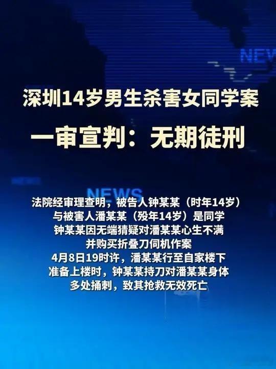 14岁男生杀害女同学被判无期!11月28日,“深圳初中女生被同班男生杀害案”宣判:凶手钟某某(时年14岁)被判无期徒刑。