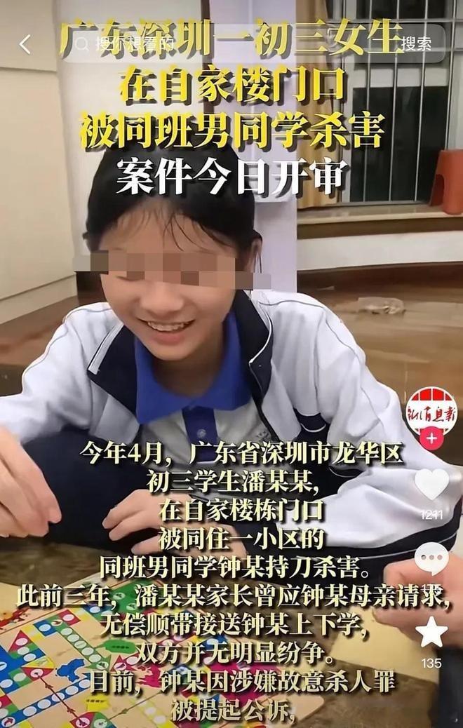 14岁男生杀害女同学被判无期!11月28日,“深圳初中女生被同班男生杀害案”宣判