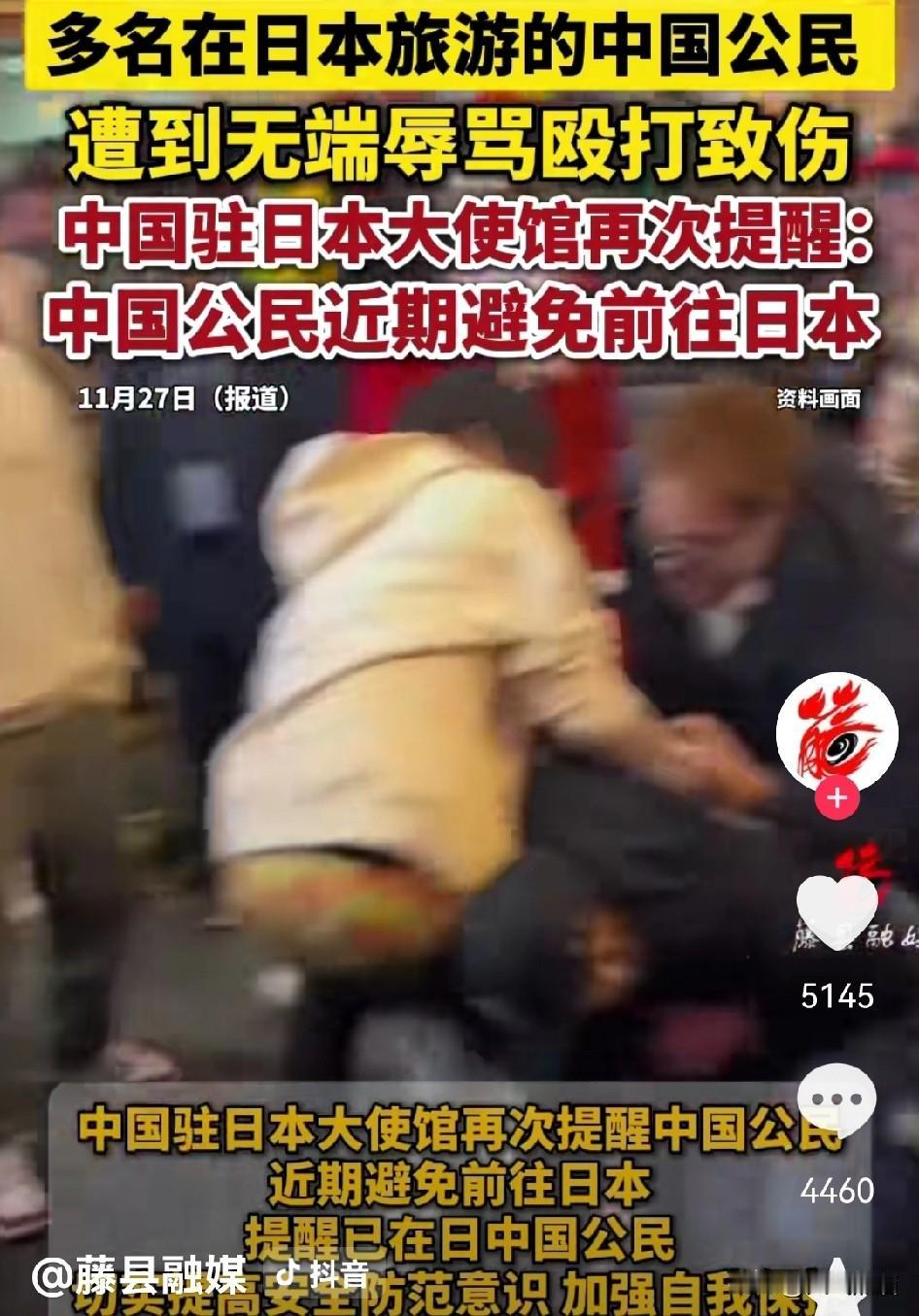 国家再次发布赴日旅游提醒, 但仍然有人说不怕, 还嘴硬的说这是自己的自由,就是喜欢, 但自己的一厢情愿换来的是遭到谩骂、遭到殴打。 这个时候又想起求助各个部门,赶紧来帮助我们,赶紧救救我们。 对于这些故意添乱,过度使用公共资源的,真的应该装听不见,看不见。 国内这么多旅游景点还不够你转悠的,非得去日本折腾,是不是相当于资敌。