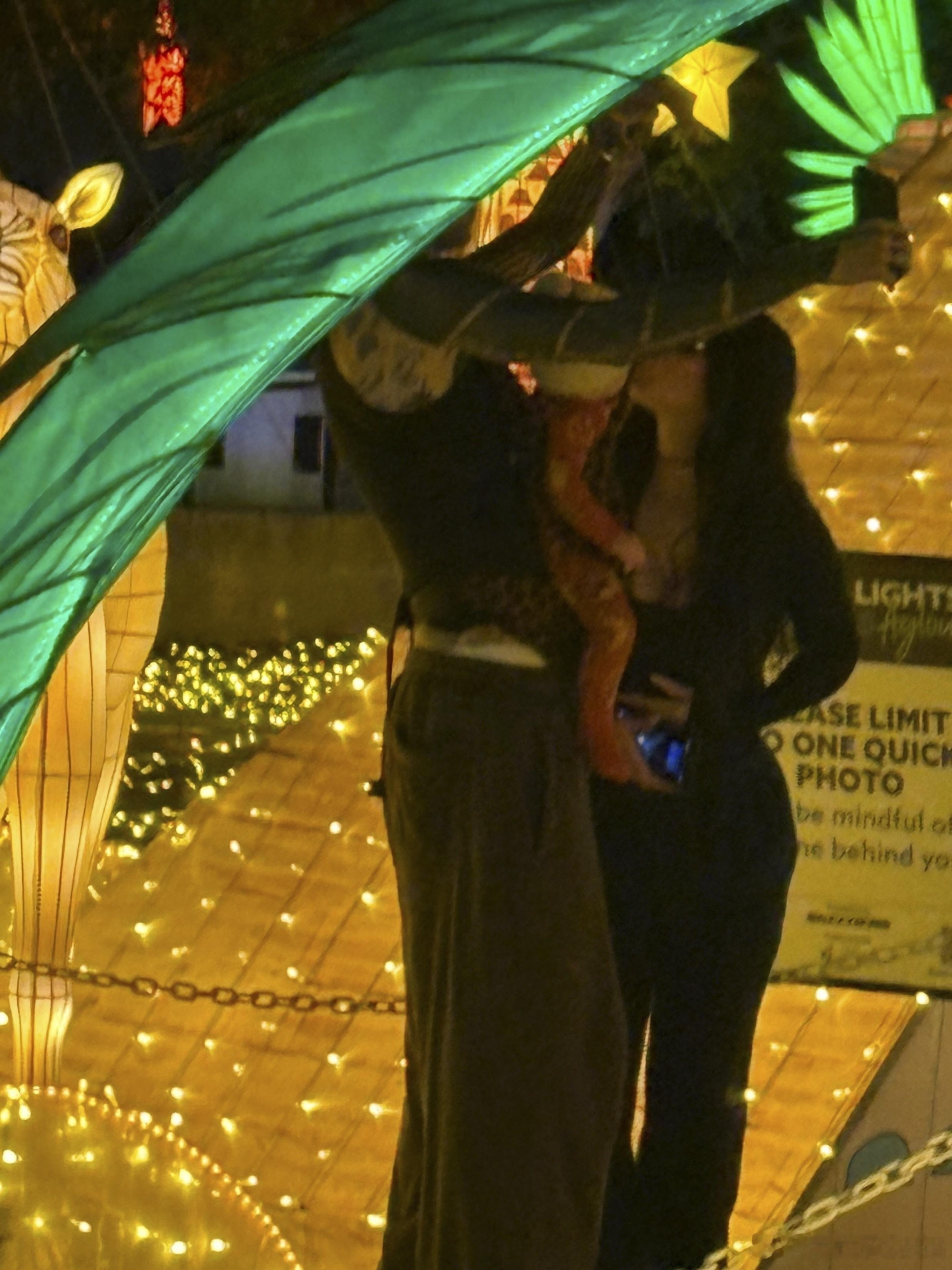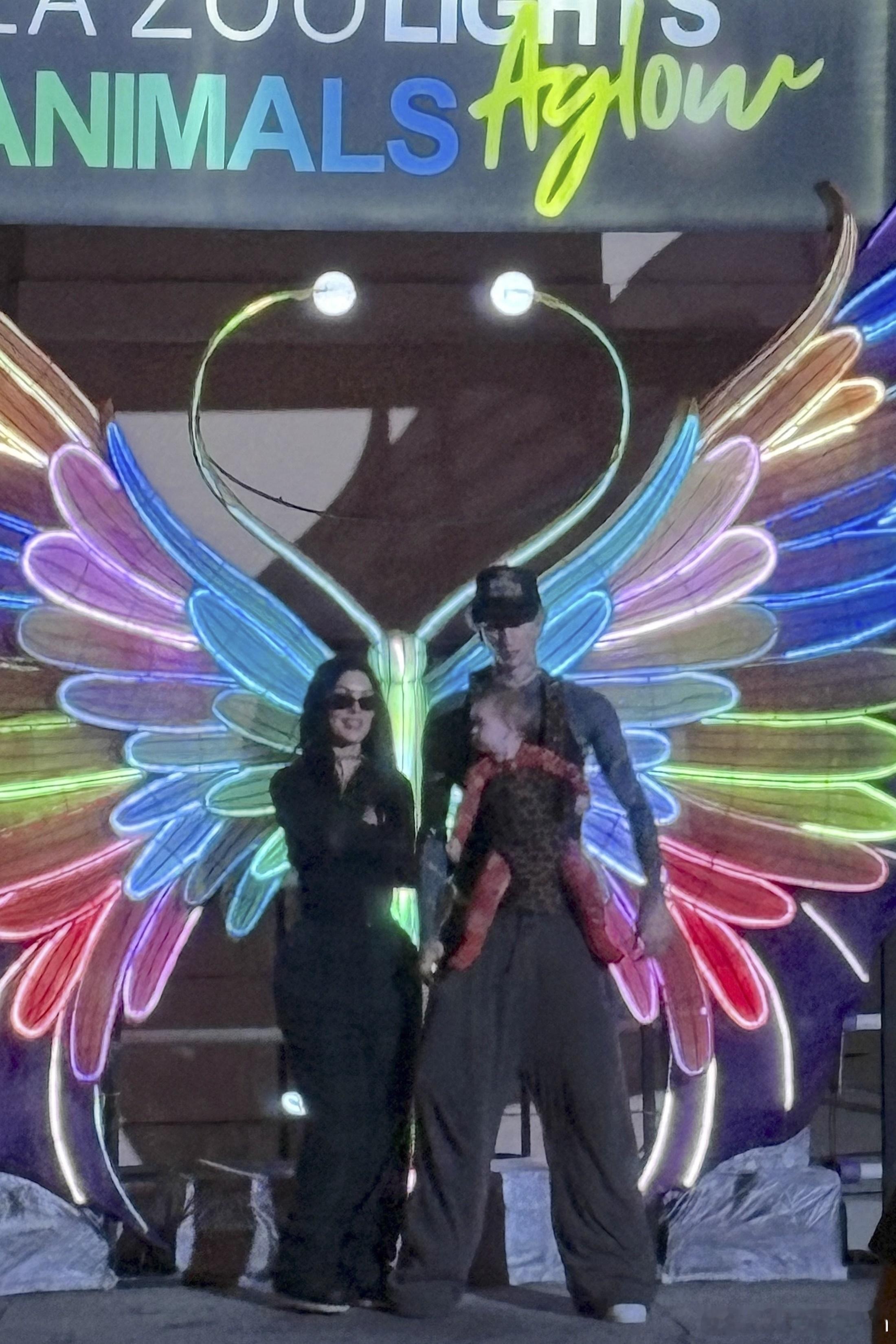 Megan fox梅根福克斯和Machine Gun Kelly带着女儿Saga到洛杉矶的L.A. Zoo Lights: Animals Aglow观看动物灯光秀,两人相处气氛很友好,还一起拍照什么的,而女儿Saga则看着像爸爸多一点,继承了一双大长腿