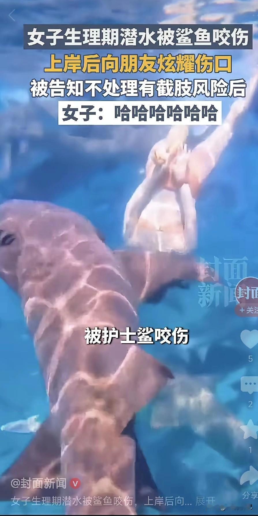 无知者无畏!一位中国女游客在马尔代夫度假时,不顾自己正处于生理期,下水潜水,还主动追赶护士鲨玩耍。结果,一条护士鲨扭头咬住了她的手腕,可面对朋友的劝阻,她却不以为然。 你看这事儿闹的。这姐们儿在水里追着护士鲨跑,那劲头,跟追自家养的二哈似的,估计心里还觉得特好玩,特刺激。但她忘了两件大事:第一,她正来着例假呢;第二,她追的可不是啥温顺的小猫小狗,是正儿八经的海里霸王——鲨鱼! 生理期那几天,咱身体本来就虚,抵抗力差,这会儿下水,本身就容易出问题。更别说,海水里还可能有血腥味,这玩意儿对鲨鱼来说,那简直就是“开饭铃”。护士鲨虽然号称“脾气好”,不爱主动惹事,但你一个大活人突然冲它冲过去,还带着“食物”的味道,它能不懵吗?能不自卫反击吗?它那不是发脾气,是本能!是保命的本能!你追二哈,二哈顶多回头咬你裤腿,你追鲨鱼,它能给你来个“透心凉”! 这不,手腕子直接被咬了个窟窿,青紫一片,牙印子都清清楚楚。上岸后,她倒好,跟没事人一样,还笑嘻嘻地给人看伤口。朋友都急了,说这万一感染了,搞不好要截肢的!她倒轻松,开玩笑说“从这儿截吗?没事,回去就好了。” 我天,这心是真大啊!她是真没把这当回事。她没意识到,这伤口看着是皮肉伤,但海水里啥细菌没有?鲨鱼嘴里又是多少微生物?这玩意儿要是感染了,可不是闹着玩的。感染这东西,不会当时就发作,可能过两天,等你回国了,突然就发作了,那可就不是开玩笑的了。到时候,估计就笑不出来了。 这事儿说白了,就是对大自然没敬畏心。觉得出国玩了,就放飞自我了,啥规矩都不管了,啥危险都看不见了。觉得“我花钱了,我就要玩得刺激”,“我觉得没事,那就肯定没事”。可大自然不跟你讲道理,鲨鱼也不懂你是游客还是啥。你挑战它的底线,它就给你点颜色看看。 旅行是为了放松,为了开心,但放松不等于瞎胡闹,开心也不能拿命去换。在国外,人生地不熟的,更得小心点,别把无知当个性,别把冒险当本事。敬畏自然,尊重规则,才能平平安安地玩回来。不然,真出了事,后悔都来不及。你说是不是?