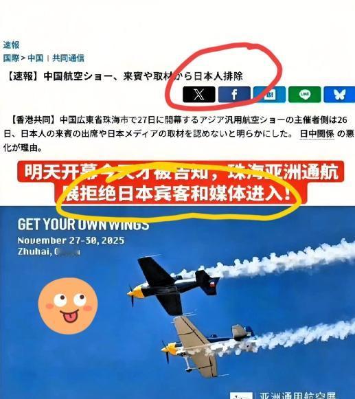 大快人心! 报应来得太快了! 日本共同社刚报道,11月27号要在珠海开幕的亚洲通用航空展,主办方直接官宣:不允许日本嘉宾出席,也不让日本媒体进场采访! 消息传到东京,日本外务省和内阁官房立刻炸开了锅,他们紧急通过外交渠道向中方提出质询,试图搞清楚这突如其来的变故到底是怎么回事。 毕竟就在几天前,参展的日本企业代表和媒体记者还信心满满地做着最后的准备工作,一些航空领域的专家甚至已经订好了飞往珠海的机票,准备在展会上展示他们的最新技术和产品。 现在,这一切都被按下了暂停键,而且暂停键按得如此决绝,没有留下任何回旋的余地。主办方给出的理由非常模糊,只是轻描淡写地用了“近期原因”这个说法,但这个含糊的解释在明眼人看来,几乎等于公开承认了这是一次带有明确政治指向的反制措施。 高市早苗近期在涉台、涉华问题上的一系列激进表态,无疑为这次事件埋下了最关键的伏笔。作为日本首相,她不仅多次在公开场合渲染“中国威胁论”,甚至暗示日本可能介入台海冲突,这种言论已经严重触碰了中国的核心利益和底线。 更让中方无法容忍的是,她还参拜了供奉有二战甲级战犯的靖国神社,这种行为无异于在历史问题上公然挑战国际公理和人类良知。 珠海航空展的主办方在这个时间点做出这样的决定,显然不是一时冲动,而是对日本政府近期一系列错误行径的必然回应,一种清晰而强硬的信号传递。 被取消资格的日本嘉宾中,不乏一些在航空领域有着重要影响力的人物。日本航空工业会的会长原本计划在展会上发表演讲,介绍日本在小型飞机制造和航空零部件方面的最新进展。 几家知名的日本企业,比如川崎重工和三菱重工,也租下了不小的展位,准备展示他们的喷气式公务机模型和航空发动机技术。 现在,这些精心准备的展台可能面临空置的尴尬,而那些已经运抵珠海的展品,也成了这场外交风波中最直接的牺牲品。日本企业界人士私下里表达了他们的失望和无奈,他们清楚,政治的寒流已经让商业的春天提前结束了。 日本媒体的遭遇则更具戏剧性。包括共同社、NHK在内的多家主流媒体记者,在几天前都收到了组委会寄来的采访许可证,上面还盖着鲜红的公章。他们中的有些人甚至已经提前抵达珠海,熟悉展馆环境,规划采访路线。 然而就在11月26号晚上,他们几乎同时收到了组委会发来的邮件和短信,通知他们的许可证作废,第二天不得以任何身份进入展会现场。 中方此举的深意,远不止于一场展会的准入问题。航空展本身就是一个展示国家综合实力和对外开放姿态的平台,珠海航展更是中国向世界展示航空航天成就的重要窗口。在这个平台上拒绝日本,等于是在国际舞台上公开表达对日本政府的不满。这是一种“软制裁”,但效果却比任何经济制裁都来得更加直接和深刻。 它告诉日本,任何损害中国核心利益的行为,都必然会在各个领域遭到对等的回应,这种回应可能不是立即的,但绝不会缺席。 值得注意的是,这次被拒绝的并不包括所有日本人士。一些以个人身份参展的日本航空爱好者和民间友好人士,并没有受到太大影响。这表明中方的反制是精准的,目标直指日本政府和那些为其站台的主流媒体,而非普通的日本民众。 这种区别对待的做法,既体现了中方在原则问题上的坚定立场,也展现了足够的策略性和分寸感。中国并不想关闭与日本民间交流的大门,但绝不容忍日本政府一边损害中国利益,一边又想在中国市场上捞取好处。 国际社会对这一事件的反应也颇为微妙。美国的一些媒体在报道时,刻意强调了中方“政治化”航空展的倾向,试图将中国描绘成一个不遵守国际规则的形象。 然而,更多国家的航空业内人士则表示理解,他们认为在当前中日关系持续恶化的背景下,中方做出这样的反应并不意外。一位欧洲航空制造商的代表私下表示:“商业从来不能脱离政治而存在,日本政府既然选择了对抗,就必须承担相应的后果。” 对于中国民众来说,这个消息无疑大快人心。在社交媒体上,相关话题的讨论热度迅速攀升,网友们纷纷为主办方的“硬气”点赞。 许多人认为,早就应该对日本政府的挑衅行为进行有力回击,不能再让日本一边吃着中国的饭,一边砸着中国的锅。珠海航展的这一举动,正好契合了民众的普遍情绪,也让外界看到了中国在外交博弈中越来越自信和从容的姿态。 日本政府显然没有预料到中方的反应会如此迅速和强烈。在接到中方通知后,日本内阁官房长官在记者会上只能表示“遗憾”,并声称“正在通过外交渠道努力沟通”。然而,这种苍白无力的表态,根本无法掩盖日本在这次外交交锋中的被动局面。 高市早苗本人更是对此事保持了沉默,她或许意识到,自己的言论已经给日本带来了实实在在的损失,而这种损失还可能进一步扩大。