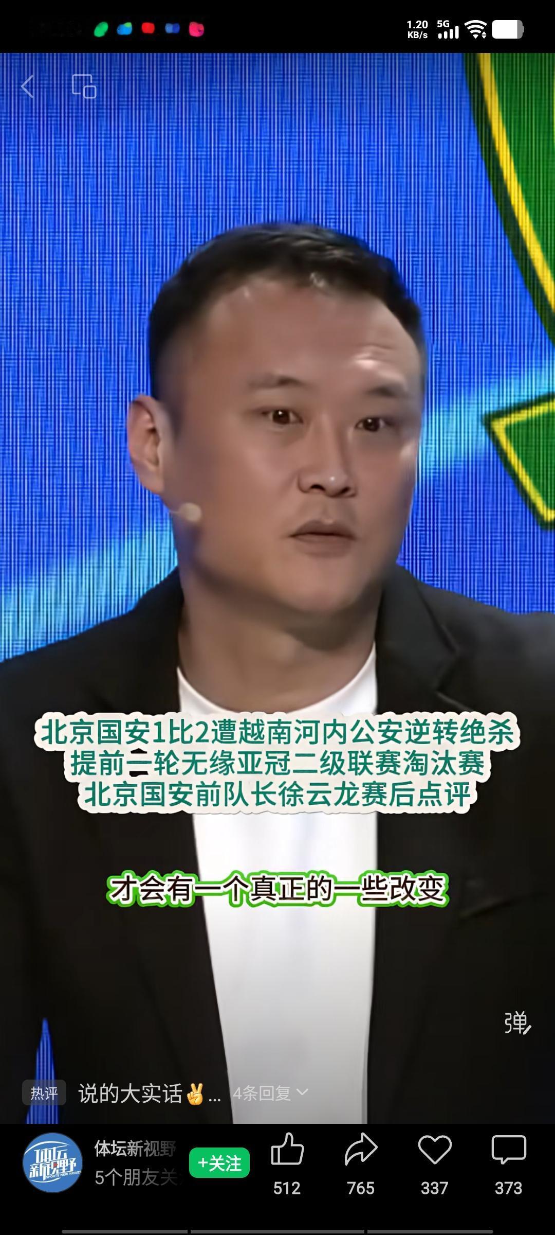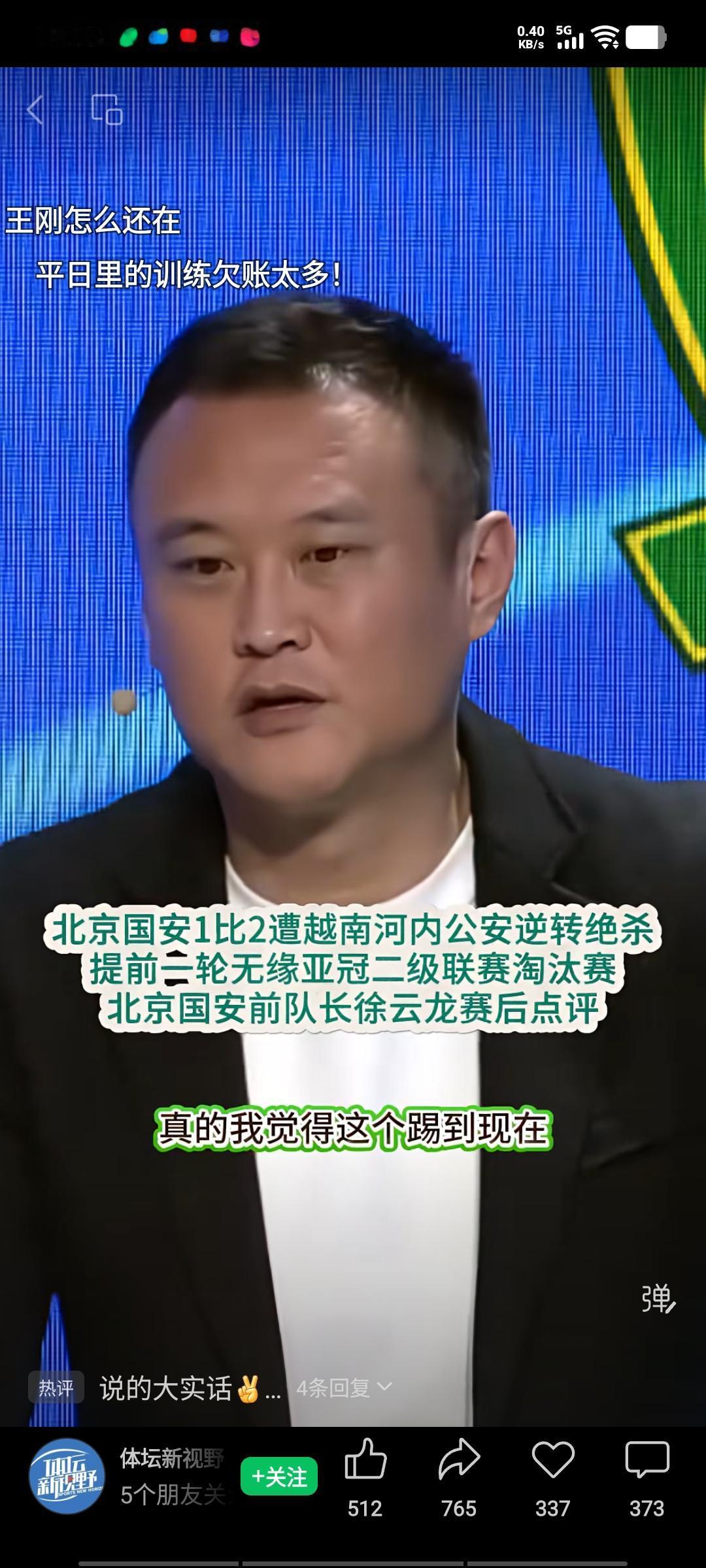 昨晚,北京国安1比2被越南公安队绝杀。赛后,国安宿将徐云龙气愤不已,他在直播间无奈地表示:“我想大家都在画面中看到了,此刻我反倒感觉更轻松些,别再出去丢人现眼了。踢到如今这个地步,我已无言以对。目前还差一步,还没到谷底呢,毕竟还有个足协杯。是不是非得跌到谷底,这支球队才会有真正的改变,大家拭目以待吧!” 输给越南公安队后,北京国安已小组赛被淘汰。中超后半段,国安突然不会踢球了,从争冠队伍沦落到见谁输谁,换了主教练也不见起色,如今连越南队都能输。足协杯的情况真不好说,期待国安能战胜河南队,好歹为本赛季留一块遮羞布。