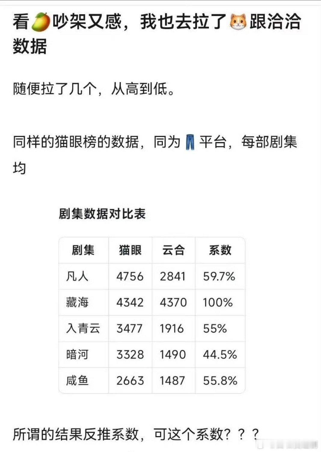 瓣友拉了个猫眼播放量和云合播放量的对比,凡人修仙传猫眼4756万,云合砍到2841万,一刀砍掉接近一半,这对吗😡😡😡