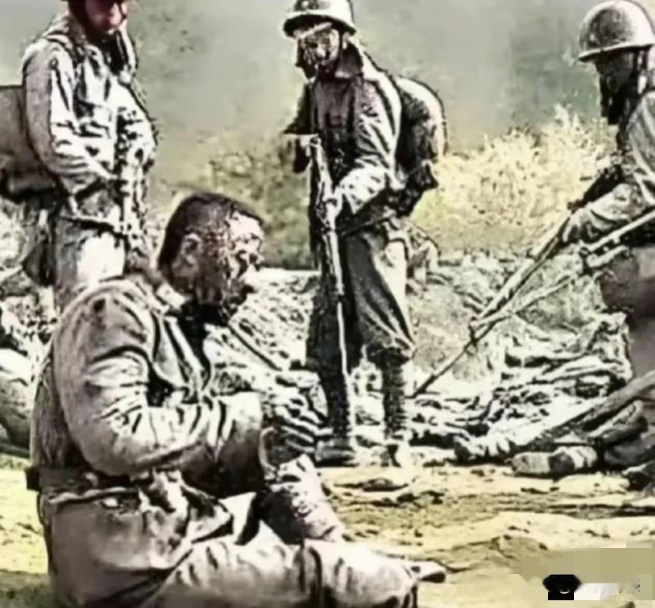 三个日本鬼子荷枪实弹的包围过来,坐在地上的这个人,表现的相当淡定,从他脸上看,没有看出有一点的恐惧之色,这是已把生死置之度外,这就是慷慨赴死的悲壮,这就是视死如归的决绝,这就是抗日英雄的英雄气概,虽然不知道这个人的结果如何,但这绝对是一个有骨气的硬汉!