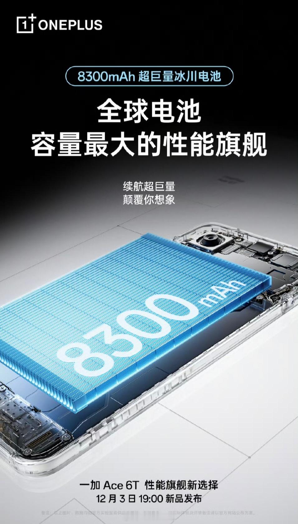一加 Ace 6T 续航组合 8300mAh 电池+100W快充,全球电池容量最大的性能旗舰,我们也进行了实测,在最新的 WHYLAB数据库 续航归零测试「5.0」中的表现不错,很猛,等会视频里见。