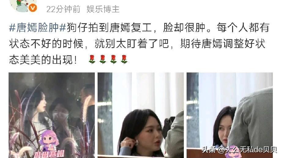 唐嫣复工了,但是状态看起来不太好,脸很肿,跟印象中的甜姐模样相差甚远。 其实我觉得她这样算不错了,毕竟已经40多了,这样的皮肤和状态,已经胜过大多数同龄人了。 不过怎么这么早就复工呢?公公的头七都还没过呢! 而且,她的大女主剧不是推迟开机了吗? 感觉现在的唐嫣事业心真的好重啊,跟刚结婚那几年完全不一样。