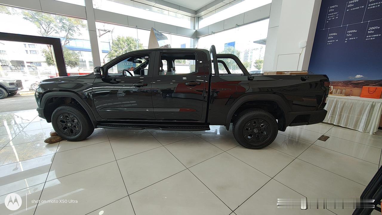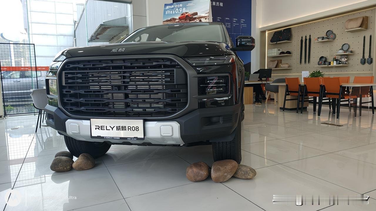 奇瑞威麟皮卡R08,采用非承载式车身设计,自带大梁。前悬挂选用钢制双叉臂,搭载2.3T柴油版发动机,匹配6MT或采埃孚8AT,采用纵置后驱。 这款车体型可观,前脸看起来也相当有气势,只是车标设计着实缺乏用心。上市前还大张旗鼓地征集车标,最终却都成了无用功。