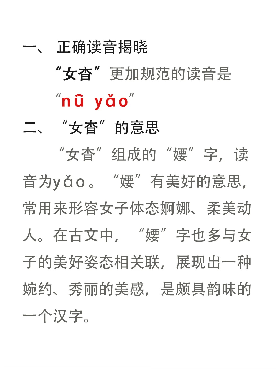 更加规范的读音应该是“nǚ yǎo”,你学到了吗?