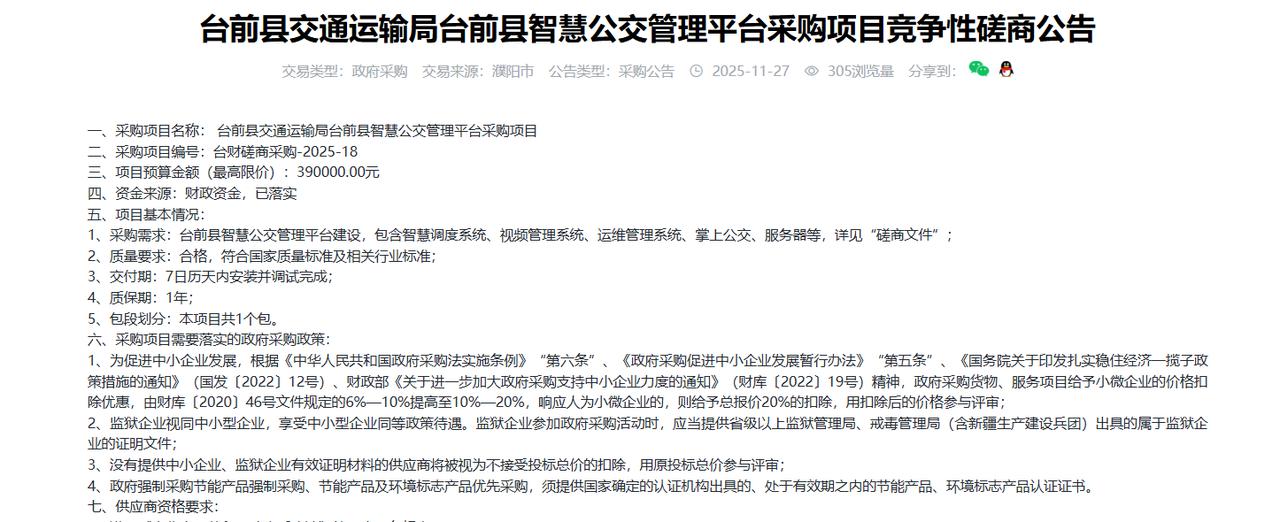 台前县智慧公交管理平台采购项目竞争性磋商公告,预算39万元
