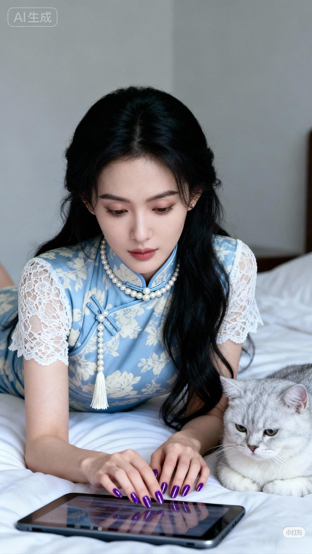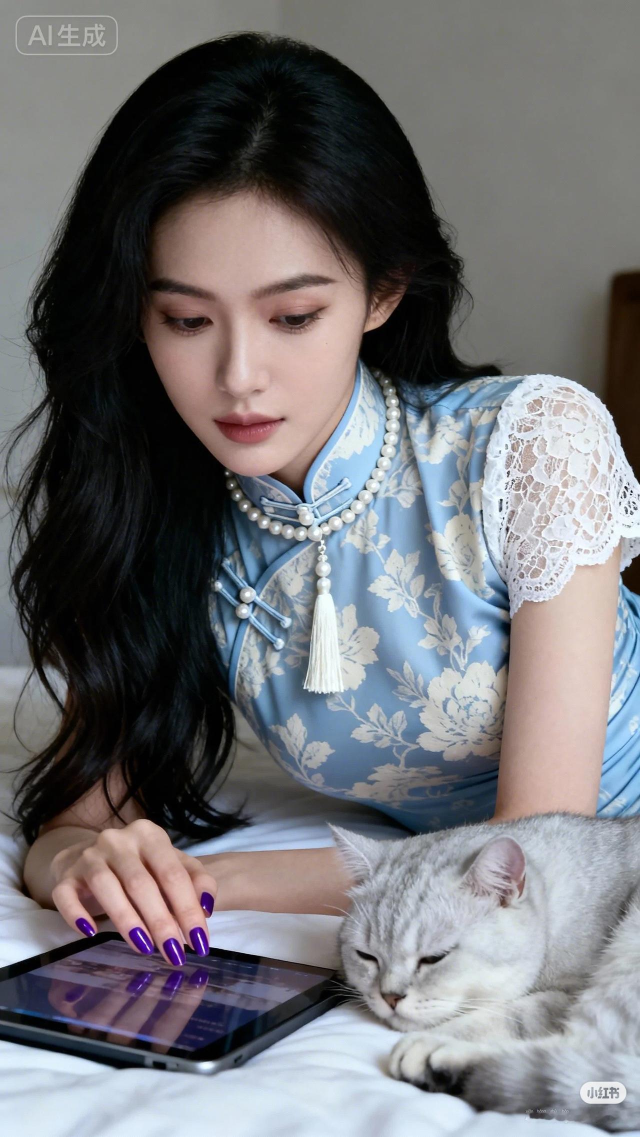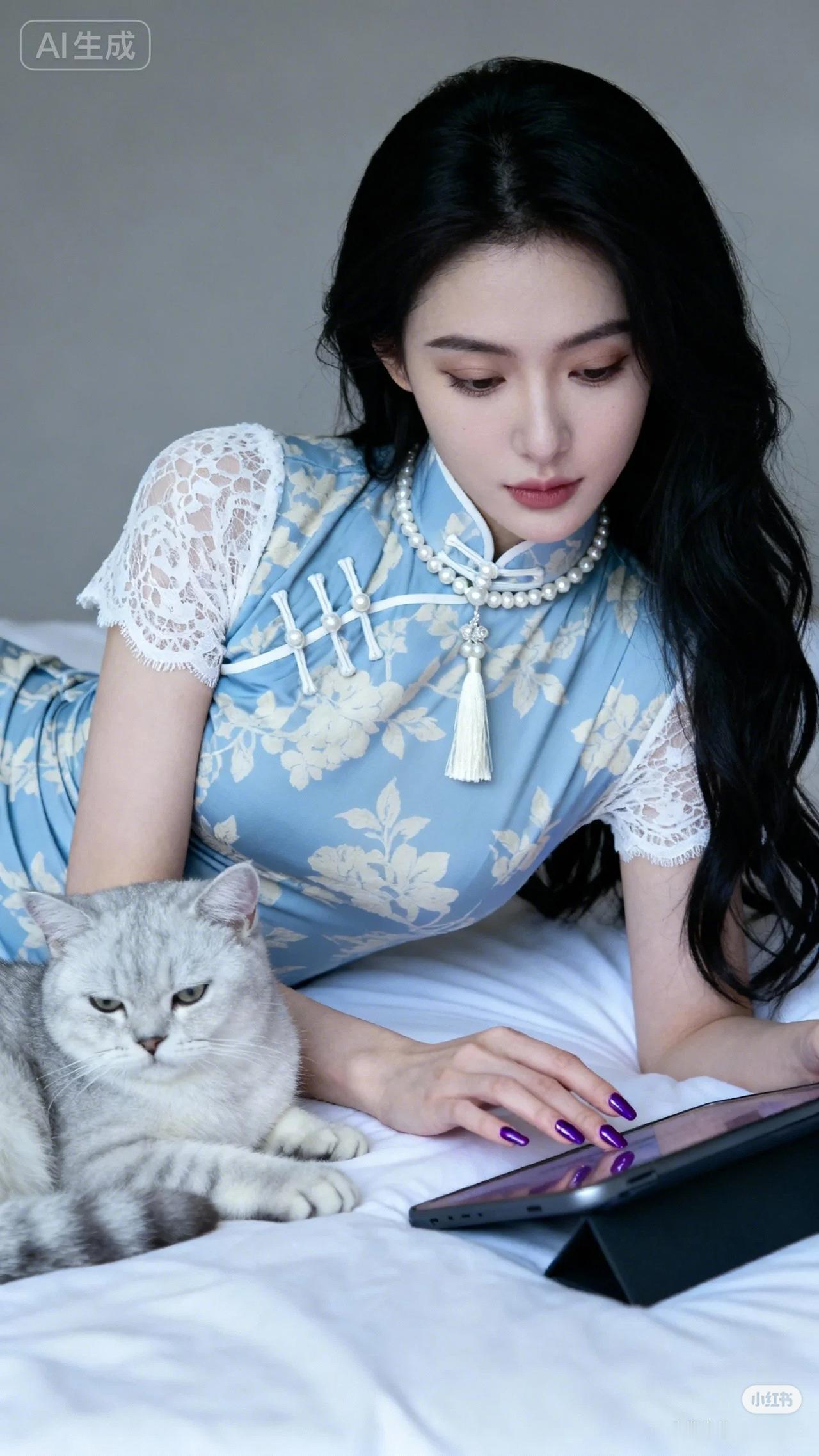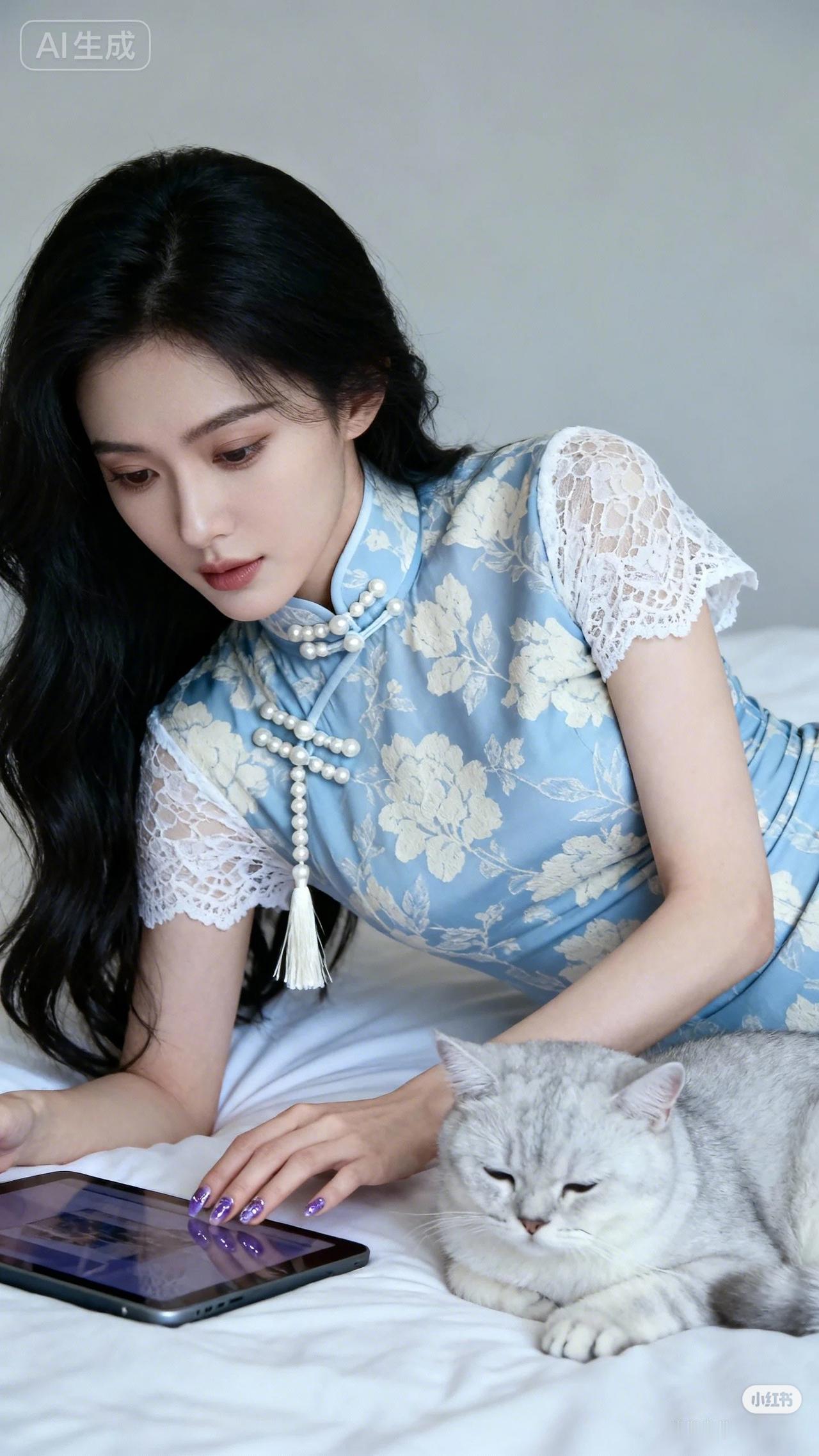 佳人着旗袍,风姿绰约行,优雅尽显现。