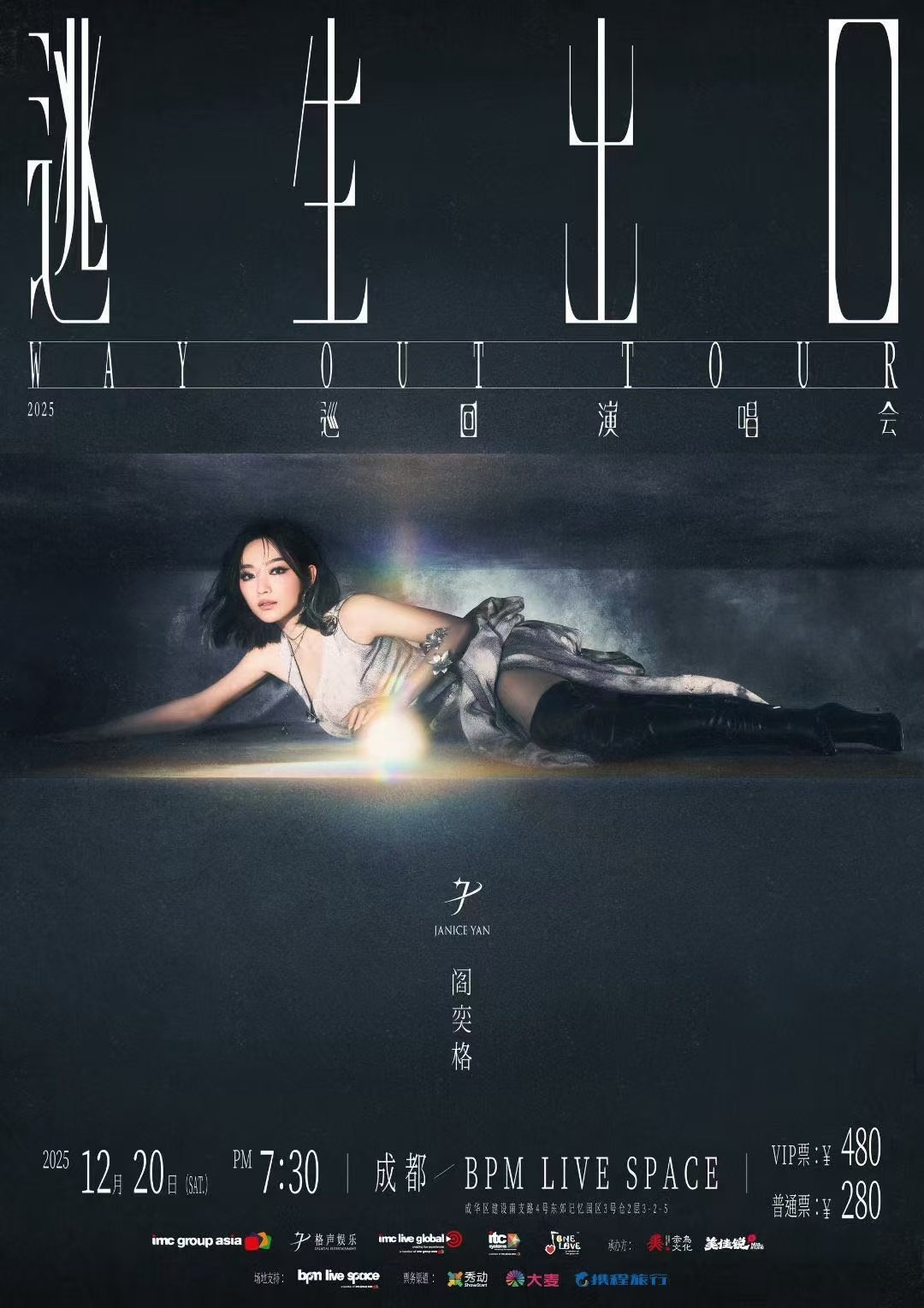 阎奕格逃生出口WayOut巡回演唱会 又要来成都啦‼️解锁成都演出新场馆bpm live space🔥从《超级星光大道》冠军,到坠入身体与心灵的低谷,她曾在掌声中站上巅峰,也曾在寂静中自我怀疑。《也可以》的洒脱直面失去,《花火》中破除迷雾寻找方向,《少了一件牛仔裤》的学会打破框架,音乐世界中她找到了和现实和解的“出口”,她希望每个来到现场的你都可以透过歌声暂时逃离现实的捆绑,找到属于自己的“Way out”🧀让我们现场不见不散吧~ 芝士娱乐