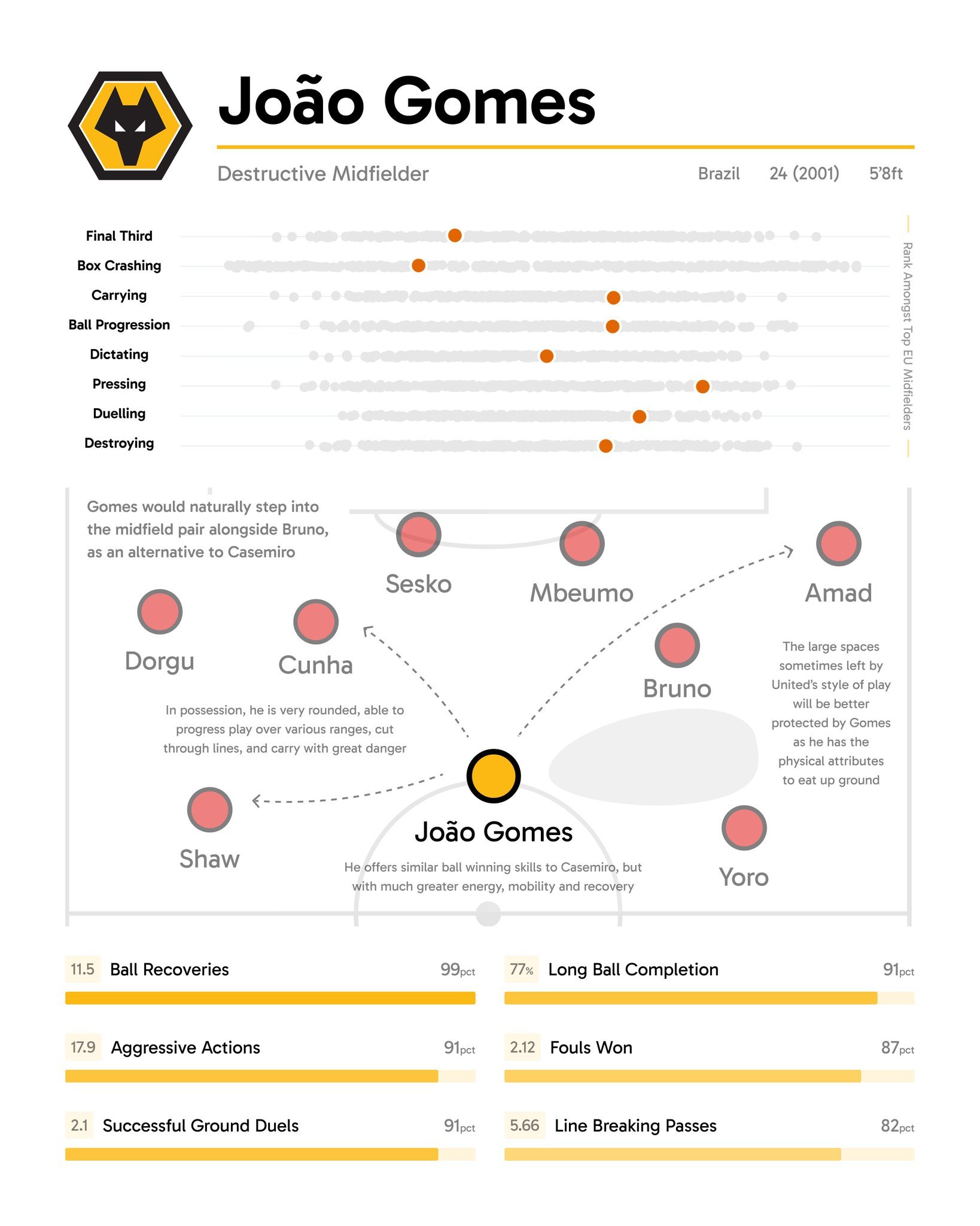 冬窗签戈麦斯就是选一个和卡塞米罗画像相似的球员来搭档B费。防守上可以覆盖空间,提供对抗强度,build up阶段能接好球。如果4000万镑左右能拿下,我觉得是一笔不错的交易。这两天又在传亚特兰大的埃默森,这哥们合同快到期了,又来下单抬价业务了