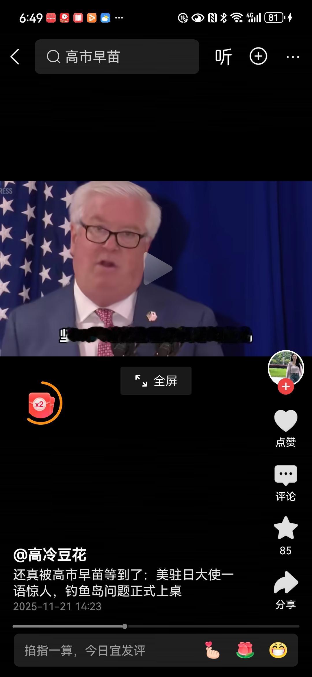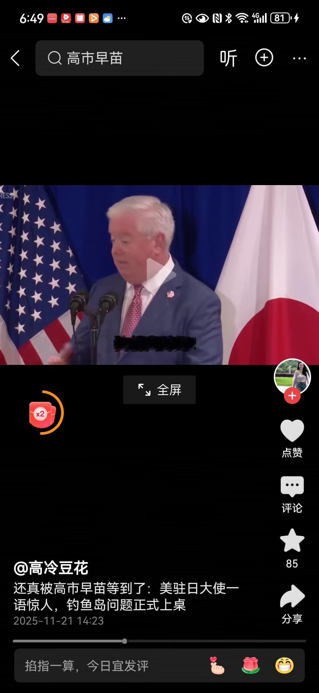 “我代表美国总统支持高市首相”美国驻日大使这是吃了多少生鱼片,竟然说出这种话?