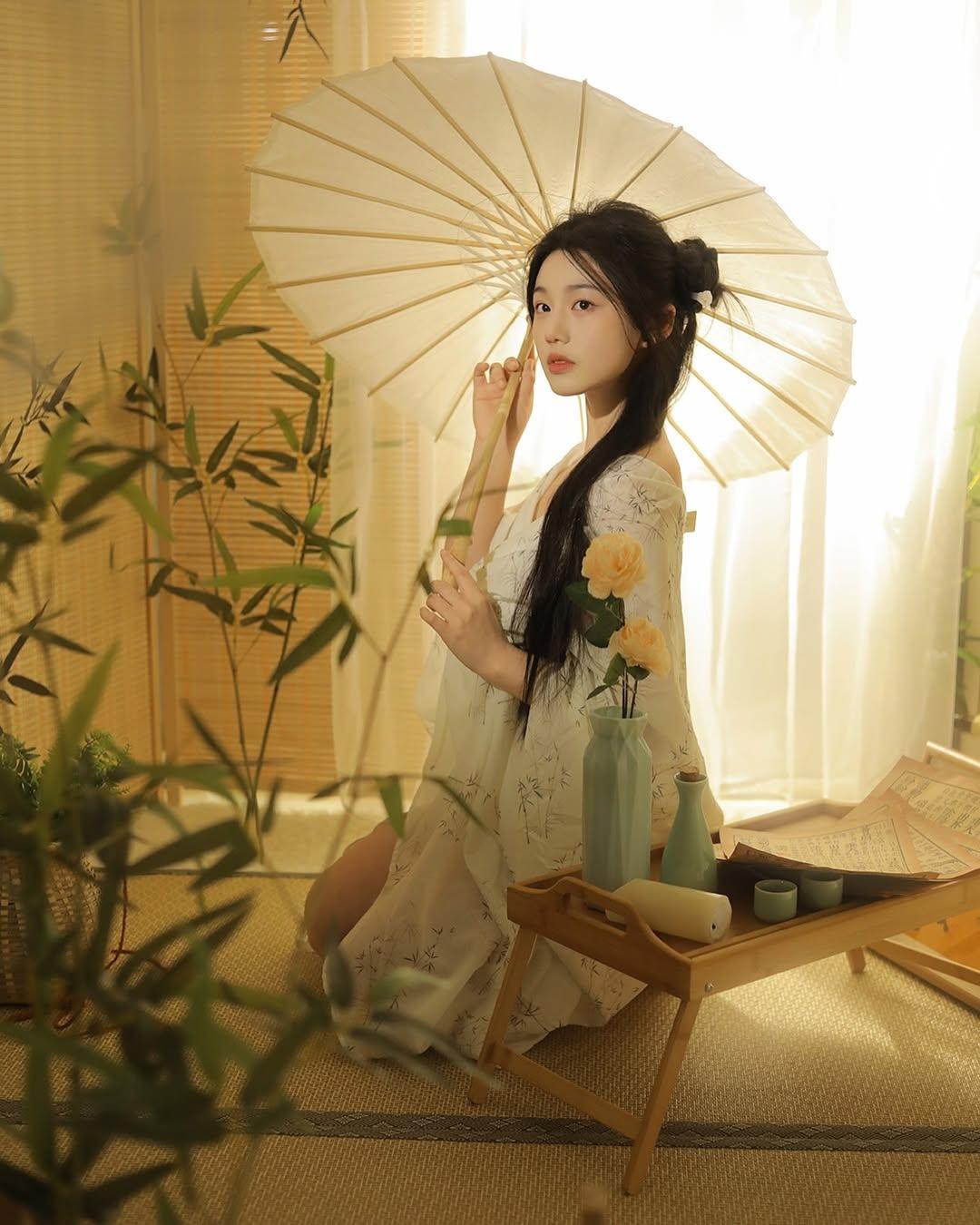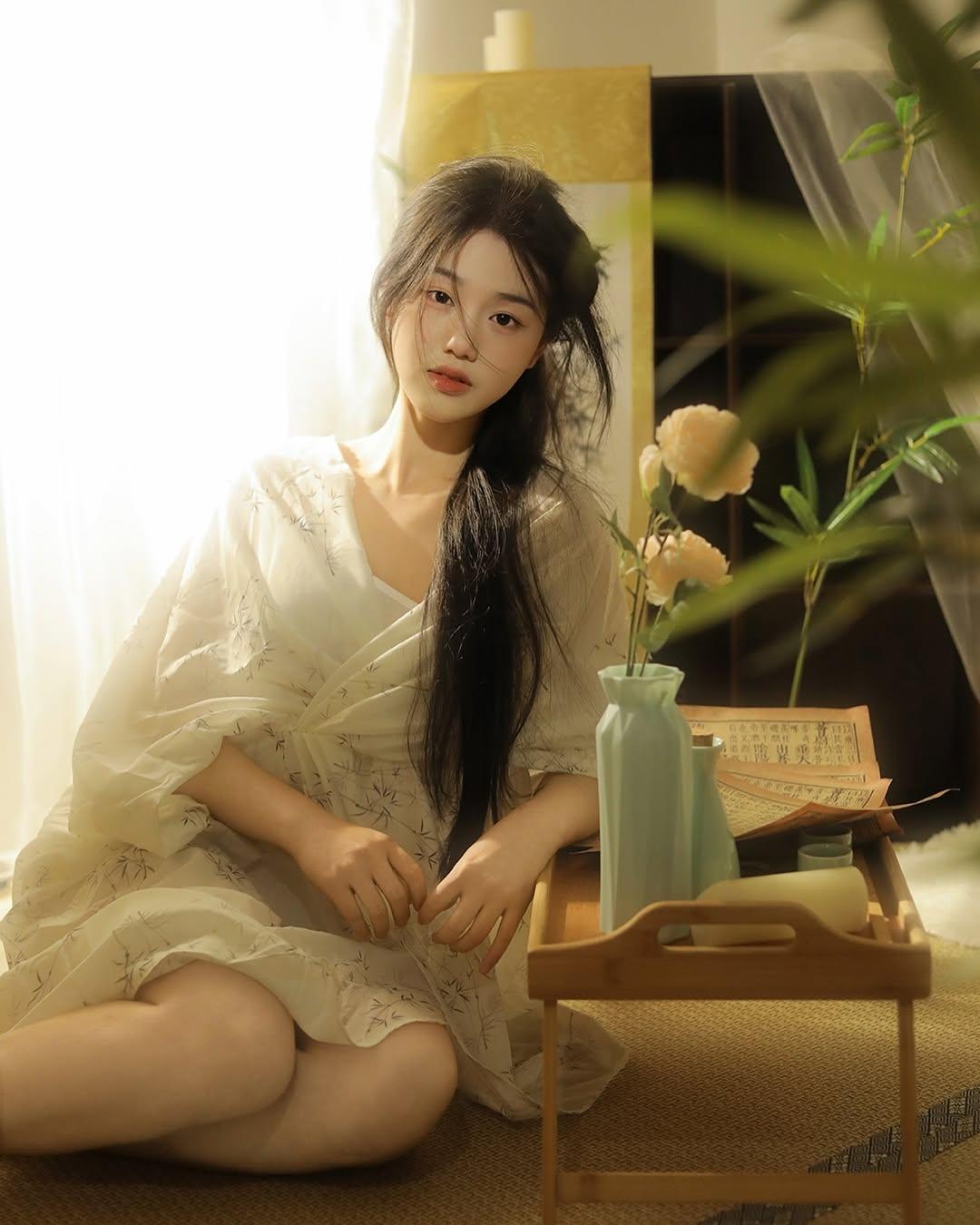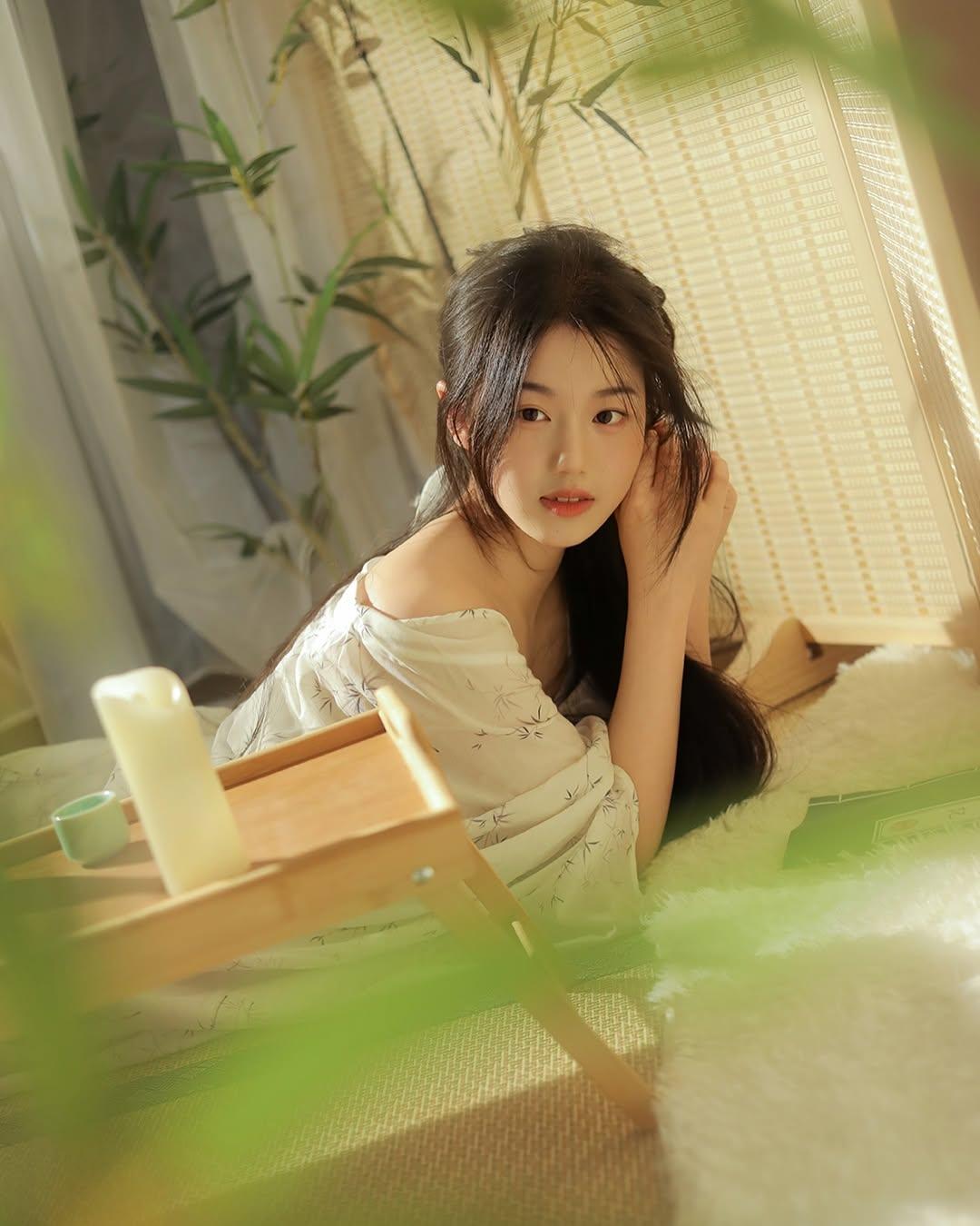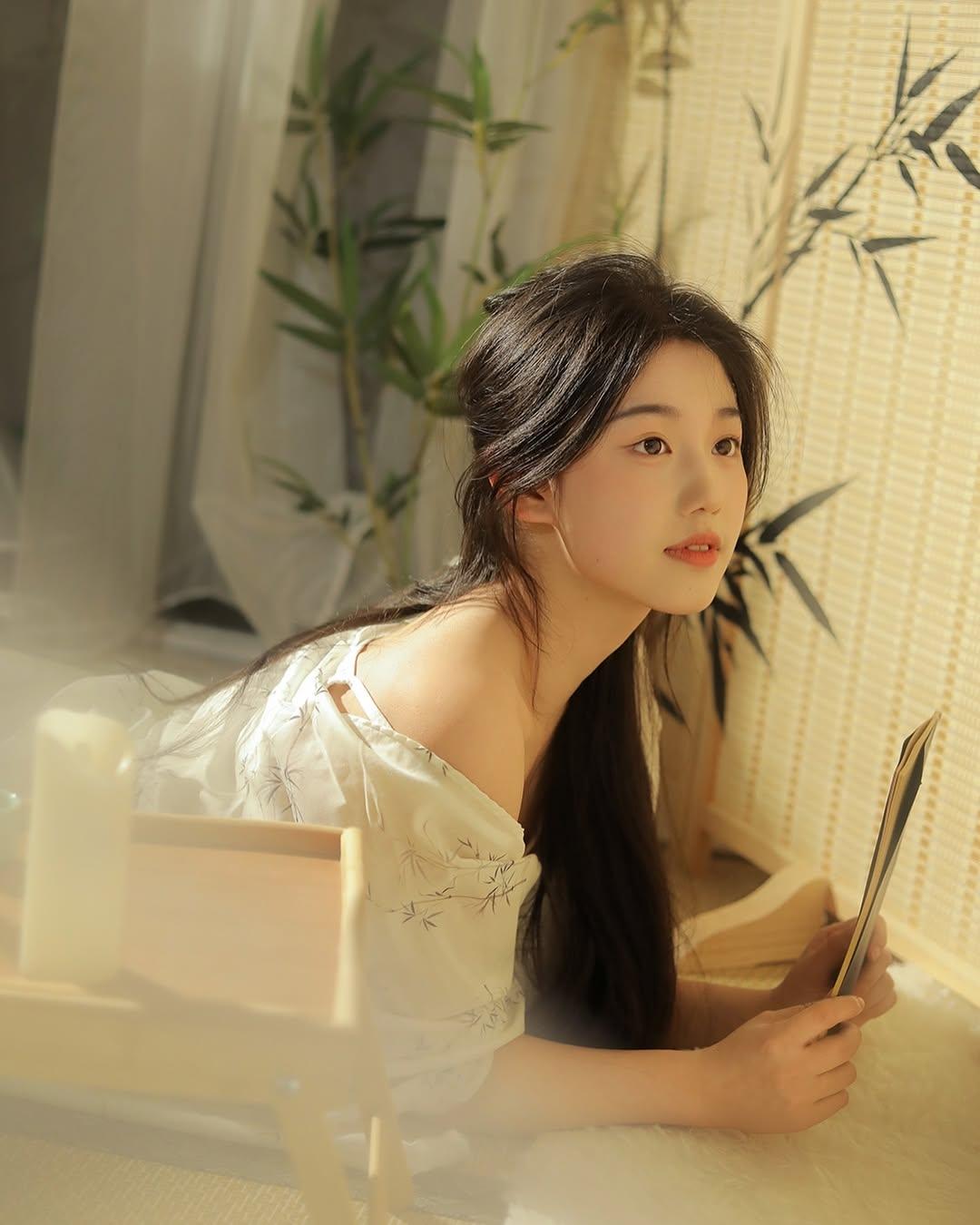梦幻森林中的白衣少女,静谧阅读的美好时光。