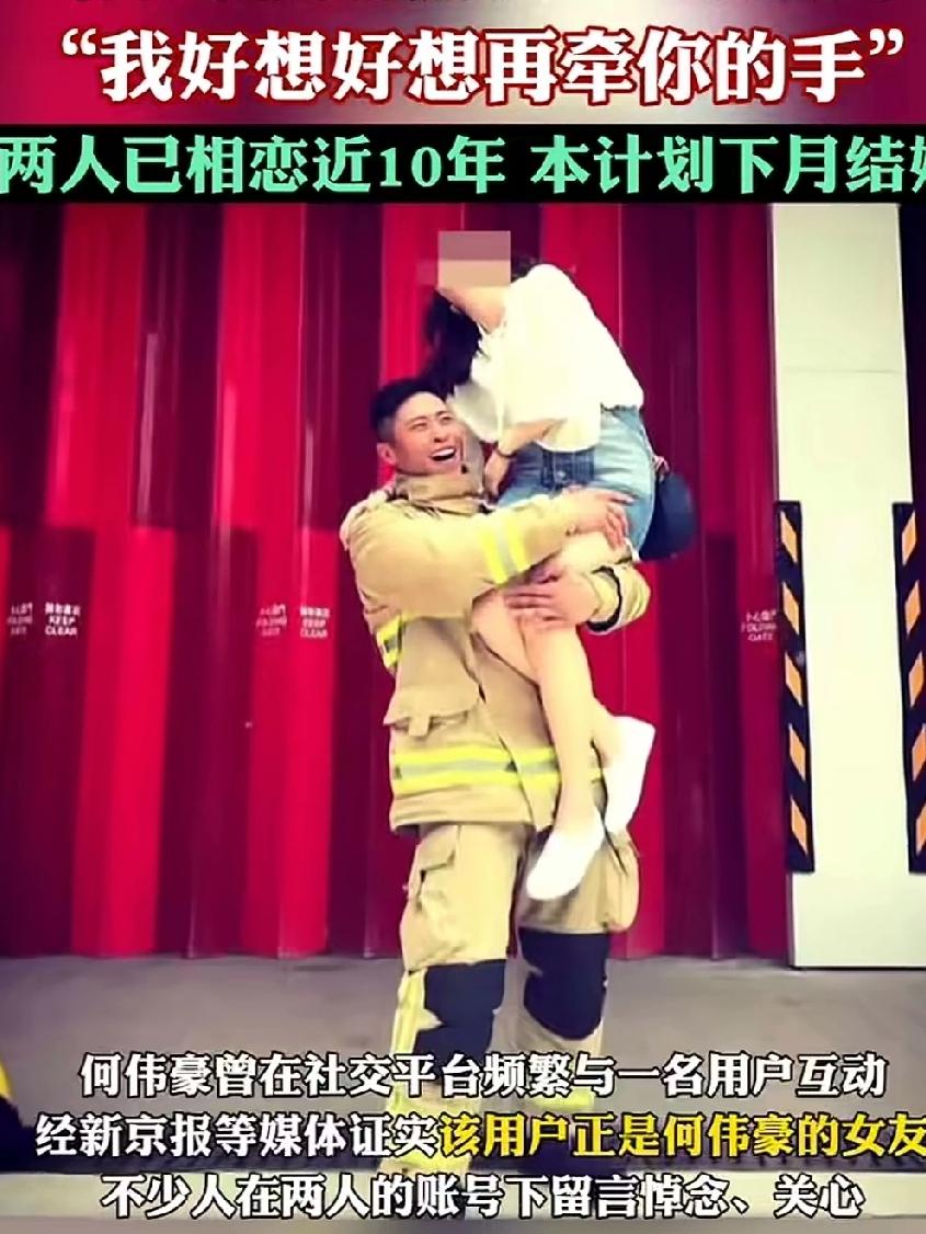 香港大埔火灾,烧没了家园,许多人葬送在这场火海中,不知多少家庭将面临家破人亡? 其中,一名消防队员因救人被大火夺走了他的生命!年仅37岁,他的离世令人无限感慨,与女朋友相恋将近十年,原计划下月结婚,可万万没有想到,在这次执行任务中,因公殉职,突如其来的火灾成了他与女友,阴阳两隔的天梯!再也见不到那个心心念念的恋人,女友的心碎了,于是,流泪发文祭拜:你是我的骄傲,真的无法接受,我好想,好想再牵你的手!字里行间透出对恋人万般不舍,英雄已逝,今生注定不能相守,但愿来生再续前缘!