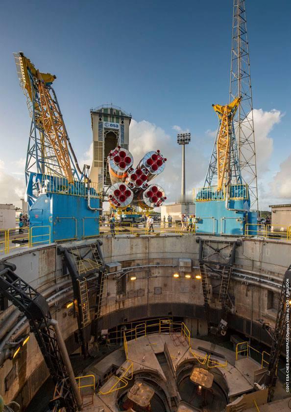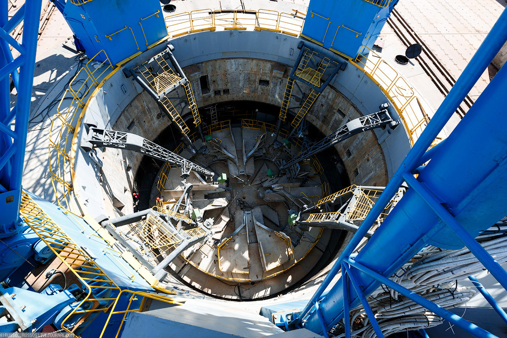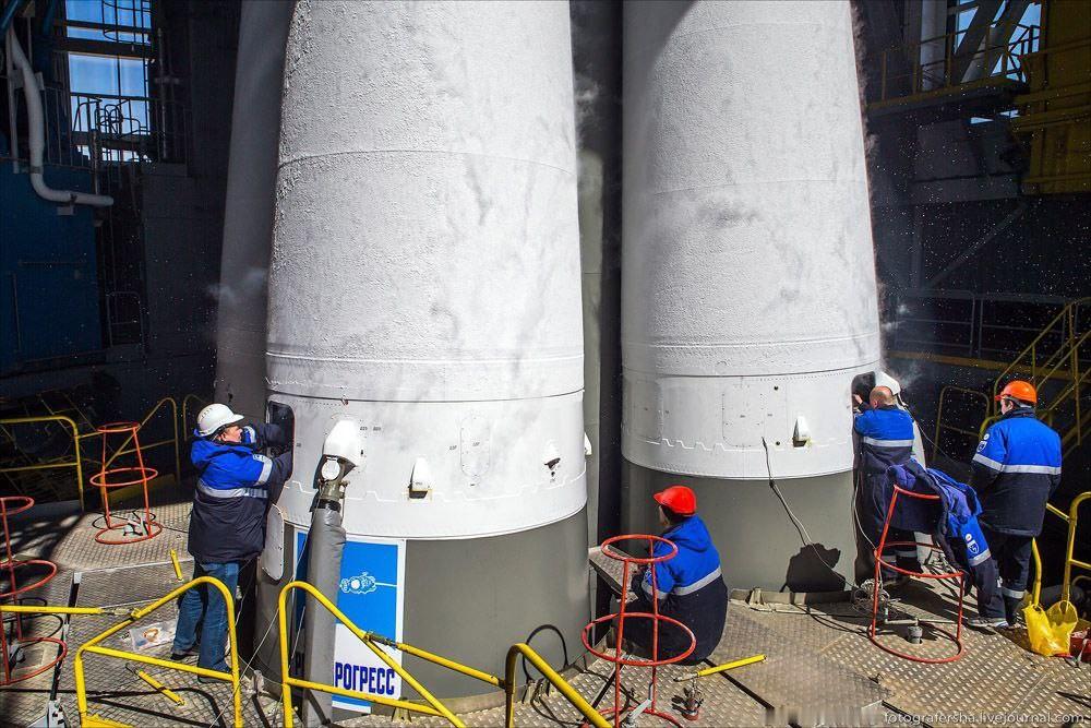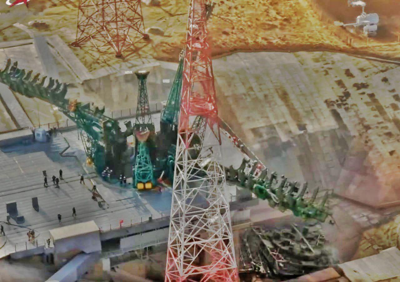 瓦西里·米申、米哈伊尔·季霍纳夫罗夫和德米特里·科兹洛夫在研发 R-7 洲际弹道导弹时采用的技术方案(采用捆绑式布局,同时点火液氧-煤油发动机的一、二级,将火箭置于带有下沉区的发射工位以降低风载影响【图1】),如今也被应用在昨天从拜科努尔31号工位发射、成功将载人飞船“联盟MS-28”送入轨道的“联盟-2.1а”火箭上。烽火问鼎计划 然而,出于点火前准备与加注需求【图2】,以及安装“点火器”(зажигалки)【图3】的需要,必须使用一种特殊的巨大结构物,原因不明地被称为“服务舱”(кабина обслуживания)【图4至图7】。在发射前,这一结构会像抽屉一样回收至专门的凹槽中【图8】,但在昨天的发射中,它不知何故掉入了火焰导流槽内【图9】。俄罗斯国家航天集团通报称,“拥有所有必要的备用元件用于恢复,受损部分将在近期修复完毕”。不过由于各种原因,俄罗斯国家航天集团目前并没有其他能够执行载人‘联盟’号以及货运‘进步’号飞船发射的发射场。