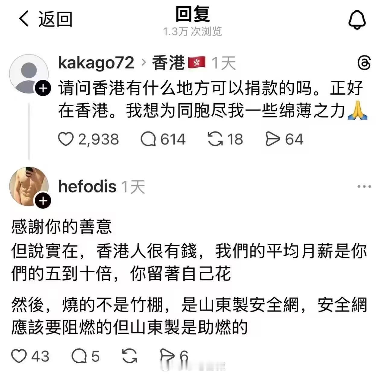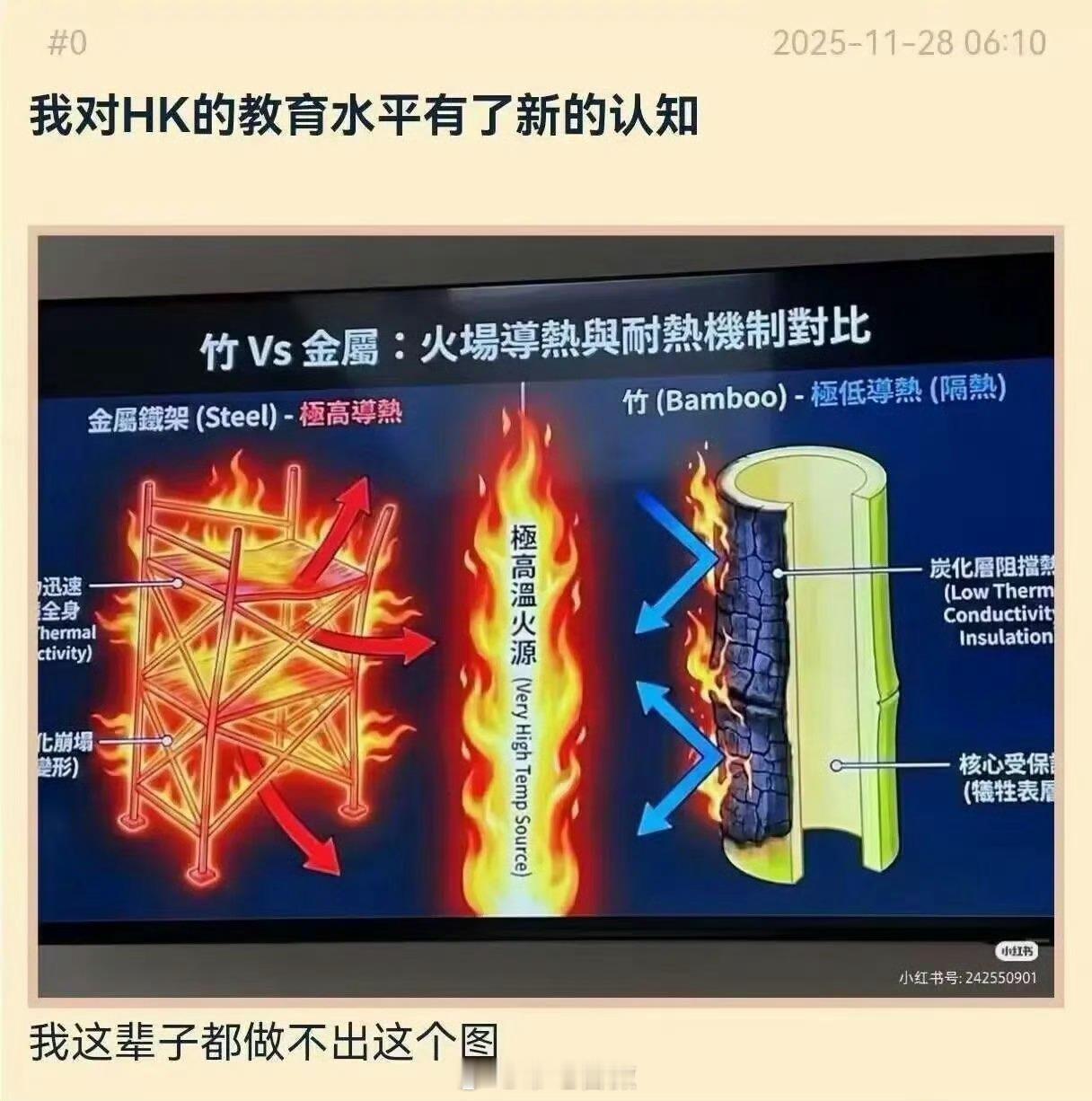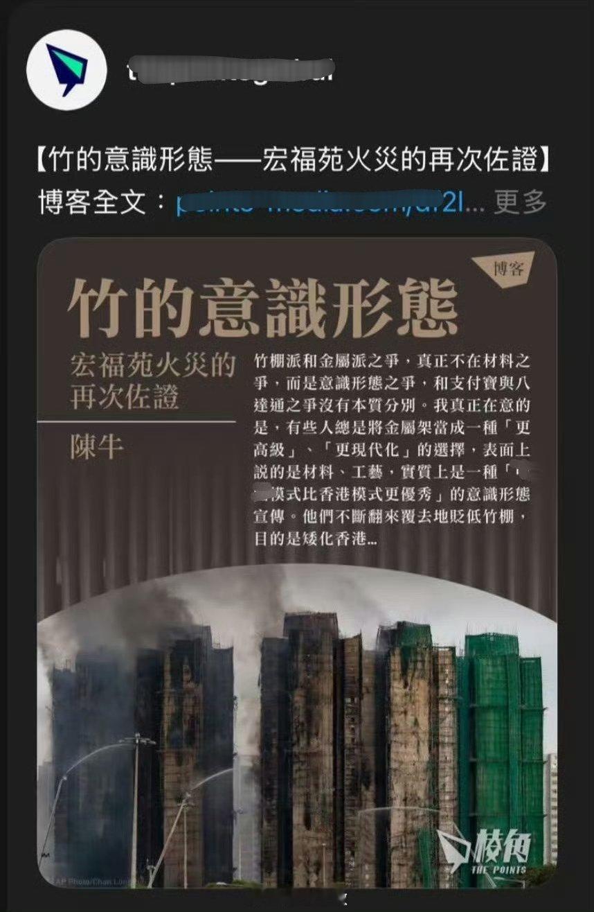 太魔怔,竹棚和钢管脚手架都能成“意识形态之争”了,有些HKer真是幼稚且荒唐,纯粹是为反而反。⭐如果换个地方,因为用了竹子脚手架导致如此巨大的灾害,你看这群人会不会手舞足蹈。⭐天天吹竹棚好,怎么不盖竹子房住呢?