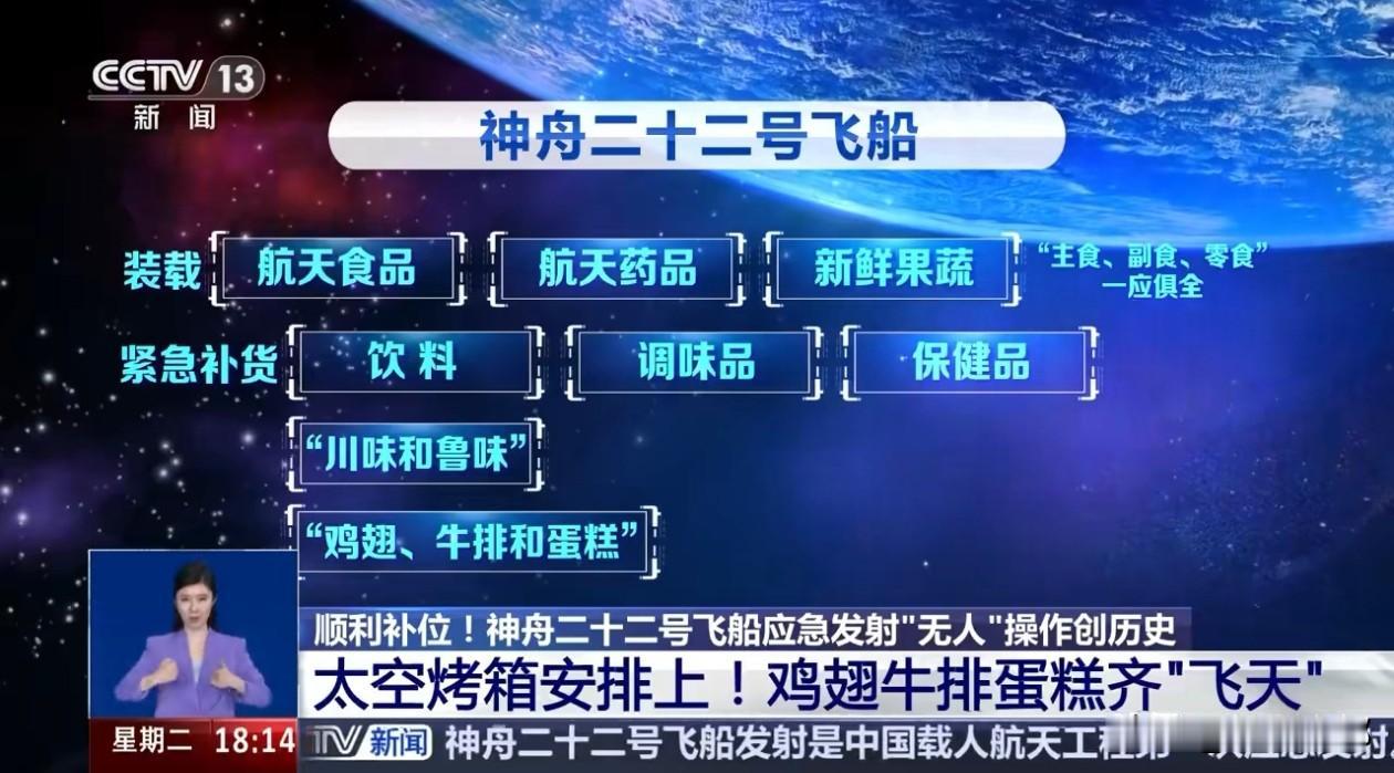 【太空干饭天花板!中国人把烧烤送上空间站了!】 谁能想到,在太空也能实现烧烤自由?神舟神舟二十二号的补给清单里,川味辣子鸡、鲁味酱牛排直接“上天”,太空烤箱一启动,鸡翅牛排滋滋冒香~ 从地球餐桌到太空空间站,咱中国人在“干饭”这件事上的脑洞和仪式感就没输过!航天大厨把川鲁美味送上天,这波操作,必须给个满分好评~