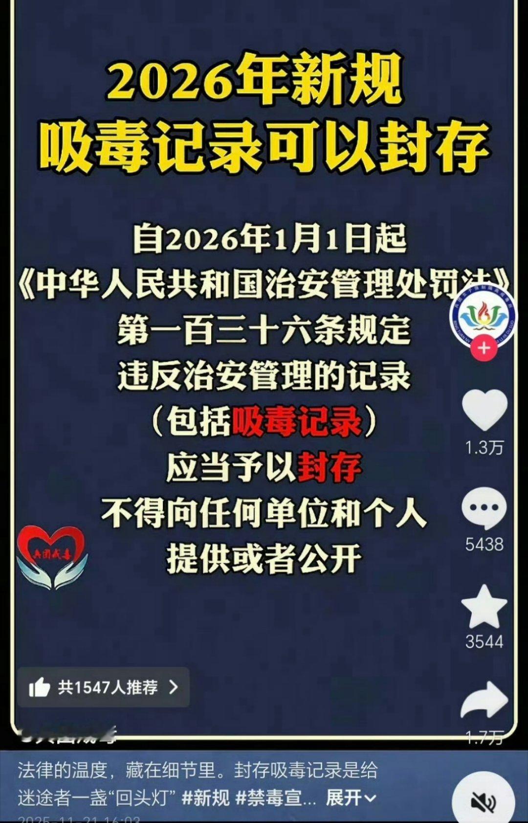 我就关心,像明星吸毒,明星嫖娼这类案件,以后是不是就不会再有蓝底白字了? 2026年起吸毒记录可封存热点观点