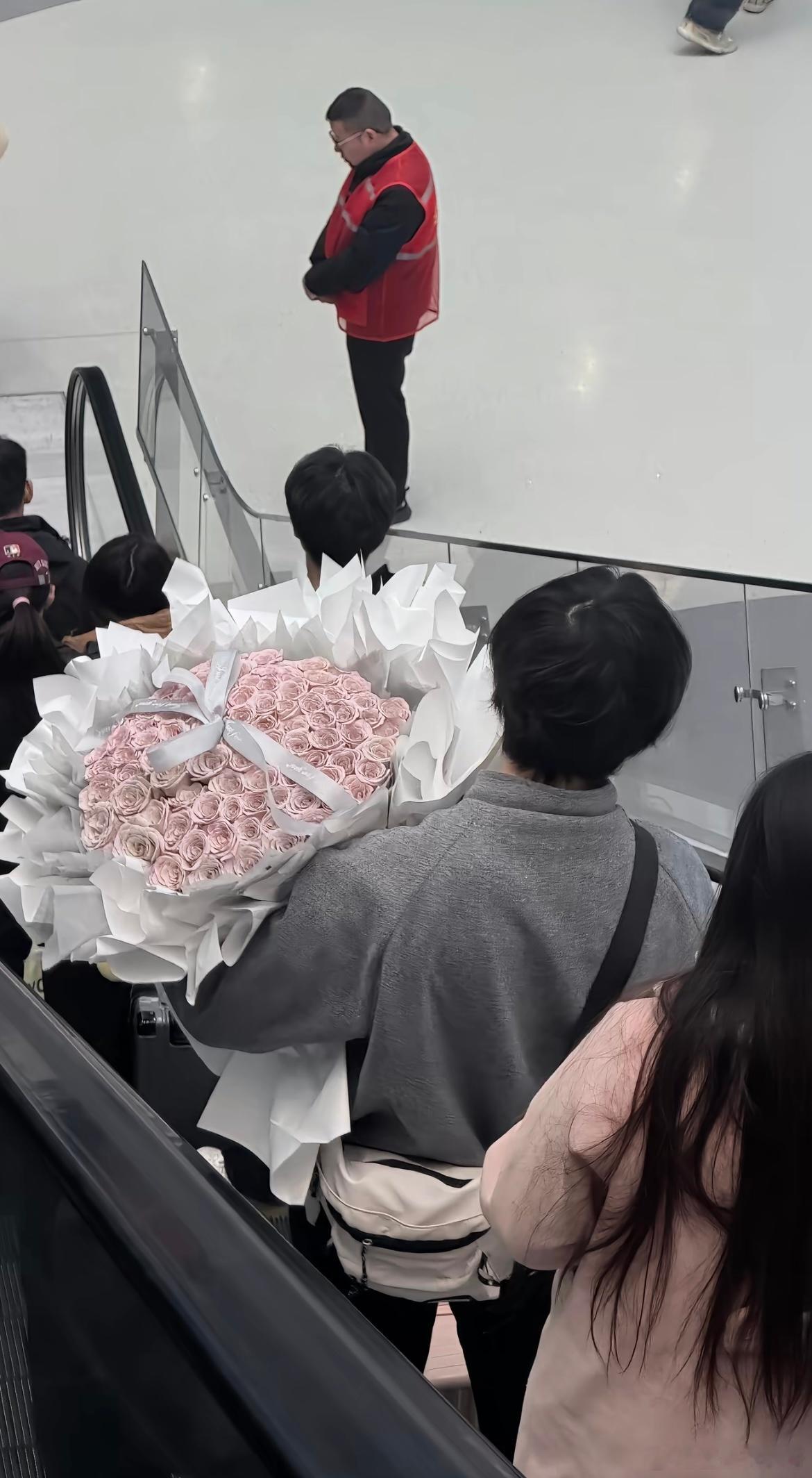 不是他的女朋友喜欢花,是他很喜欢他的女朋友。