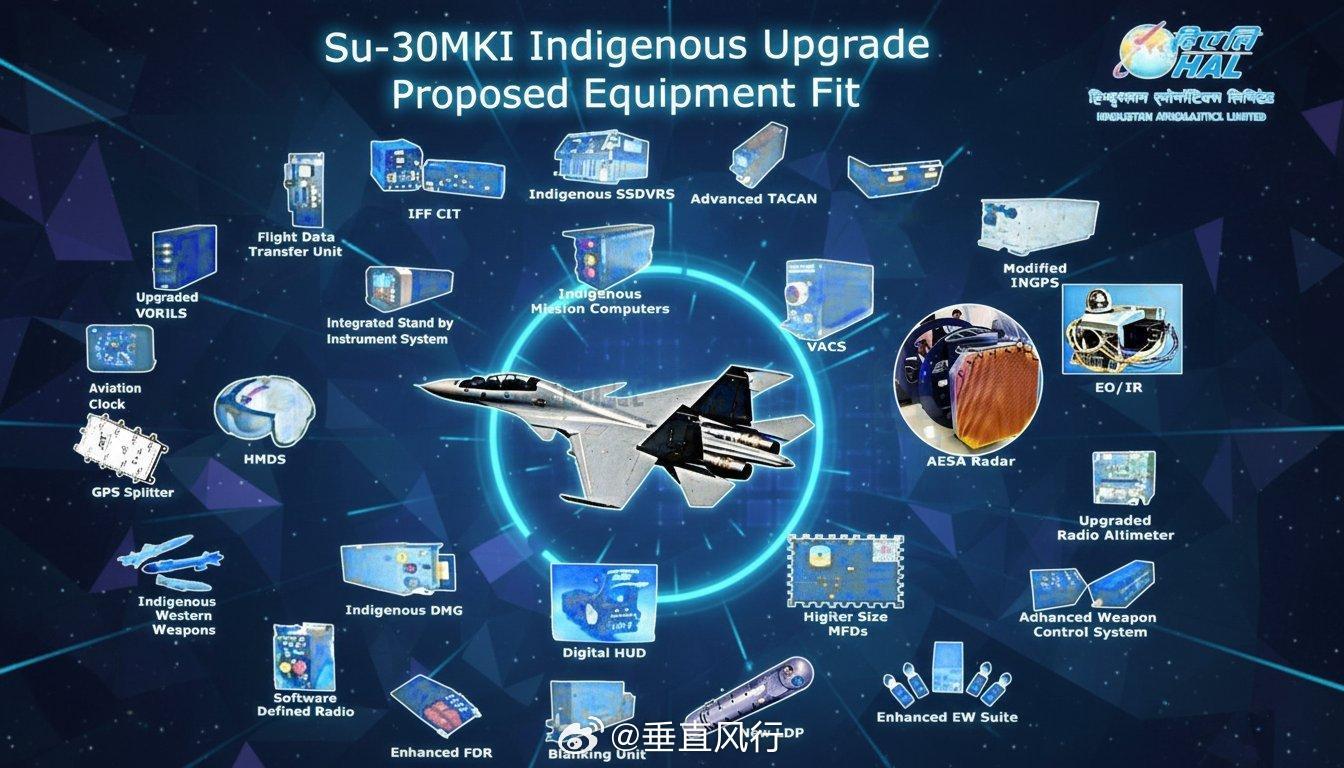 CCS即将拨款正式启动“超级苏霍伊”项目。初期阶段,84架苏-30MKI战斗机将配备改进型航空电子设备、ASPJ(高级空间光通信系统)和更大的多功能显示器(MFD)。然而,此次升级的核心是基于2400 GaN TRM的AESAR(高级电子辅助雷达)系统,即Virupaksha系统航空创作计划武器装备