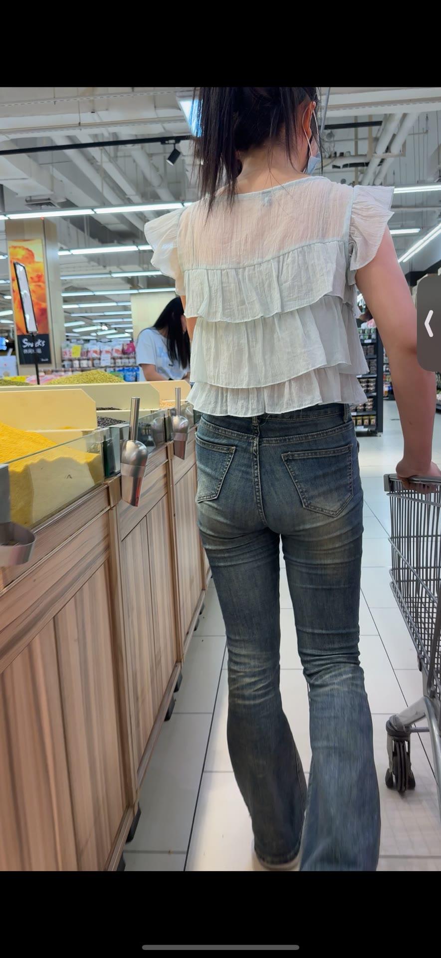 一个女孩在超市挑选商品。