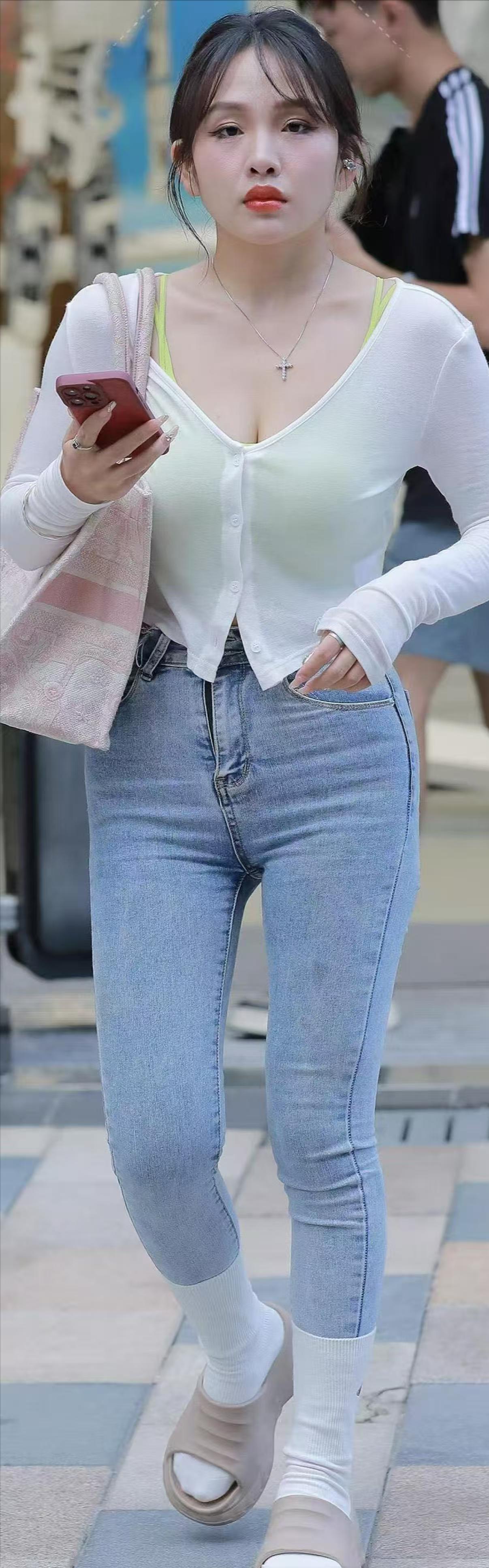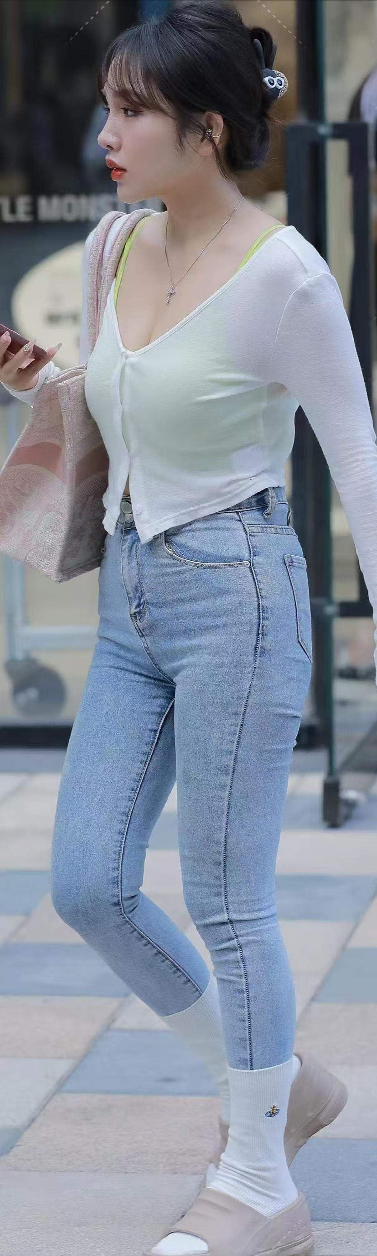 街头偶遇,这紧身牛仔裤真是太有型了!