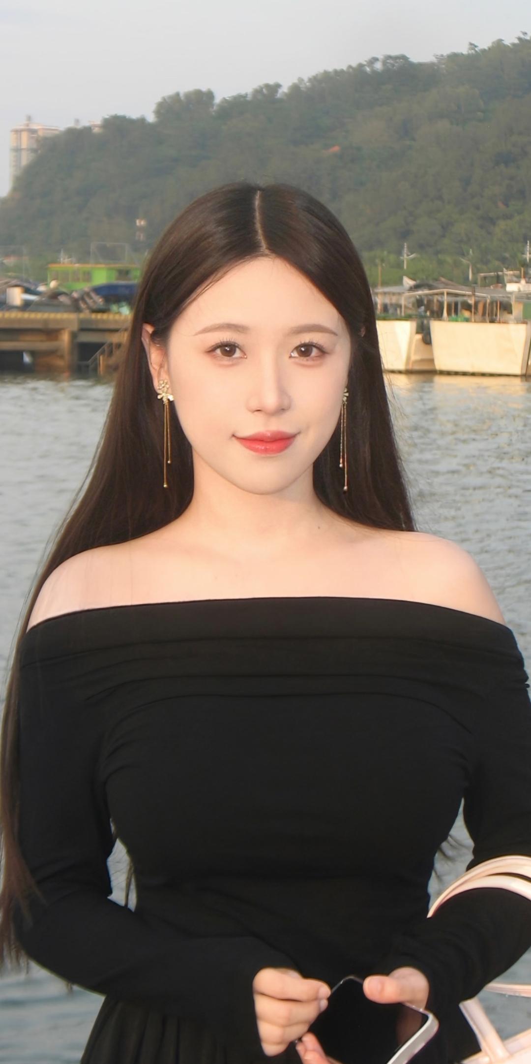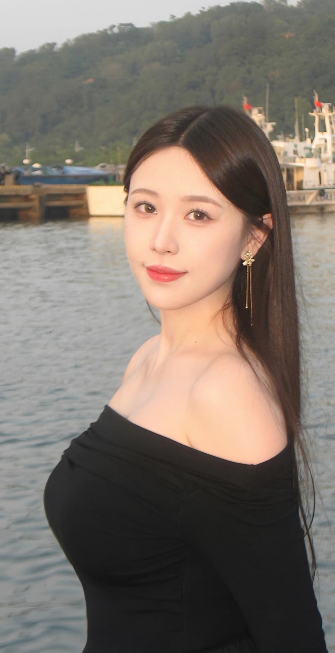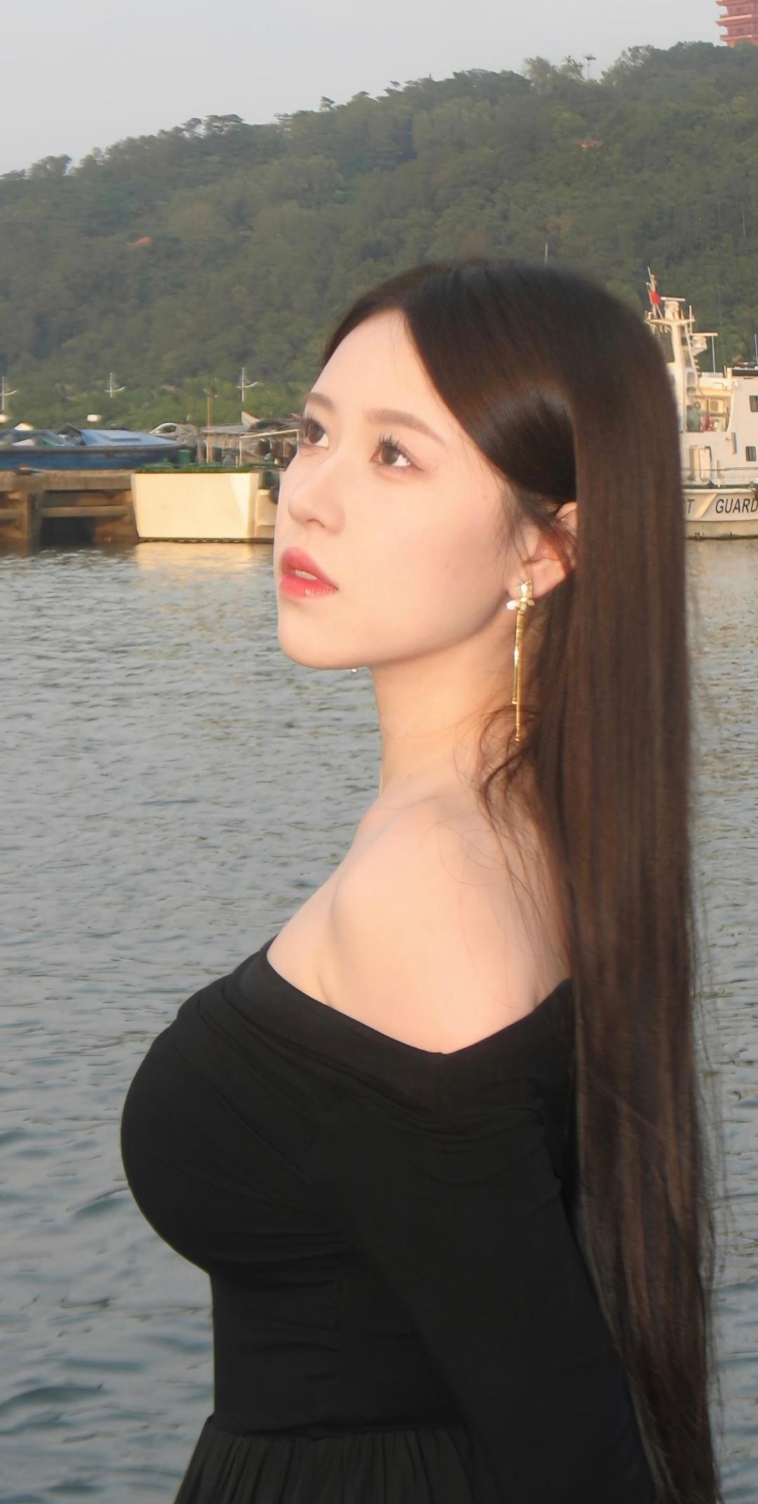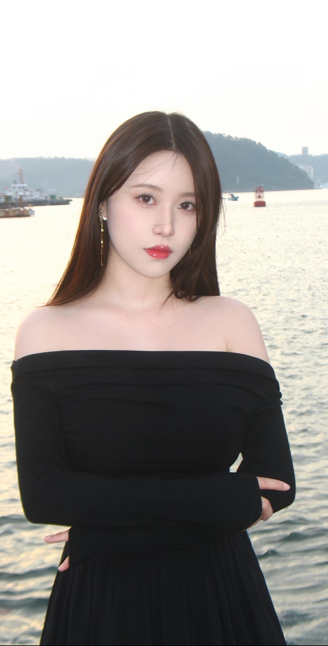 水天一色间,佳人似画来。