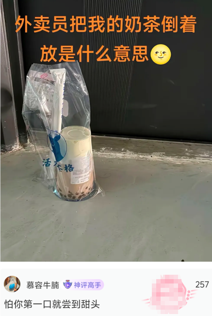 外卖员把我的奶茶倒着放