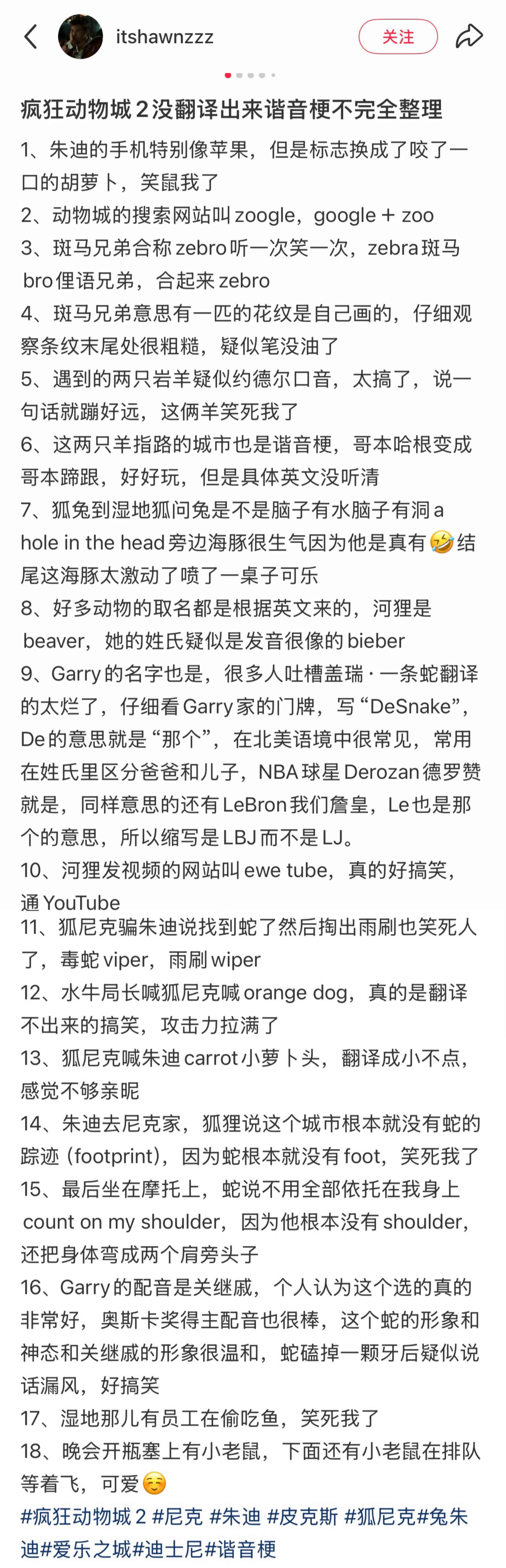 网友整理的《疯狂动物城2》里没翻译出来的谐音梗!!!佳片奇遇季 疯狂动物城翻译