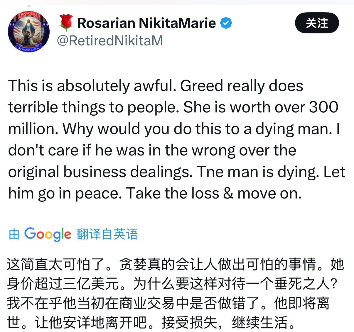 水果姐因起诉一位85岁身患绝症的残疾退伍jun人,在一场房产纠纷中赔偿 500 万美元而引发热议!!!起因是水果姐购买了这位老人的房子,但是老人以签署协议时正处于背部手术后服用止痛药的状态,自己不具备理解合同内容的心理能力为由,在交易进行数天后老人想撤销协议,于是两人打起了官司,最终因为老人没有提供令人信服的证据来证明他无法做出同意的决定,最终裁决水果姐胜诉。之后,水果提起反诉,要求赔偿 325 万美元,声称由于无法在诉讼期间租赁该房产而蒙受了损失,此外还索赔 220 万美元的所谓修缮费用以恢复房屋原貌,以及 300 万美元的诉讼费用。而此时的那位老人正因为绝症在医院躺着,因此引发热议网友们认为水果姐作为一个名人,却在跟一位老人斤斤计较。同时此事件也让网友们想起2018年,一名89岁修女因与水果姐就洛杉矶一所修道院的出售问题而卷入法律诉讼,该修女出庭期间突然晕倒并死亡。