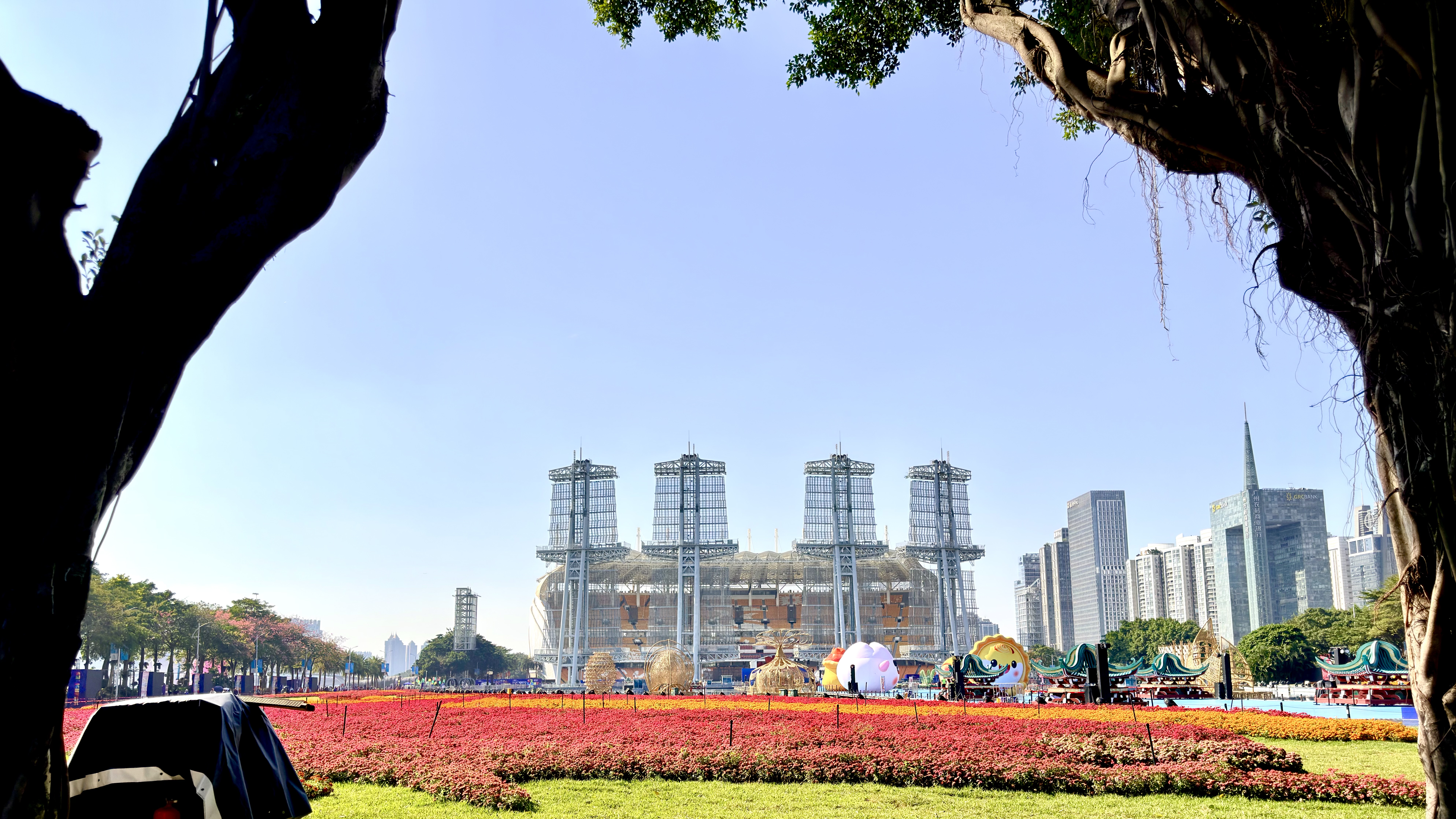 海心沙附近的三角梅卯足劲开放,为灯光秀锦上添花!