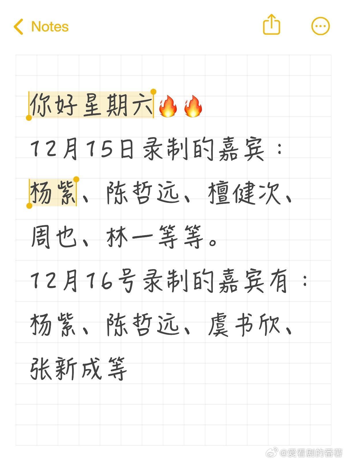 你好星期六来啦你好星期六🔥🔥12月15日录制的嘉宾:杨紫、陈哲远、檀健次、周
