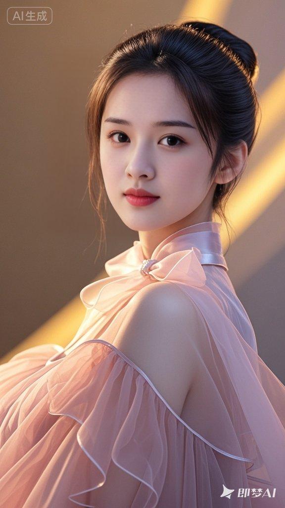 蓝光 高个 大眼睛 棕色长直发 粉色色职业套装 脖颈名贵珠宝 高贵高颜妆容