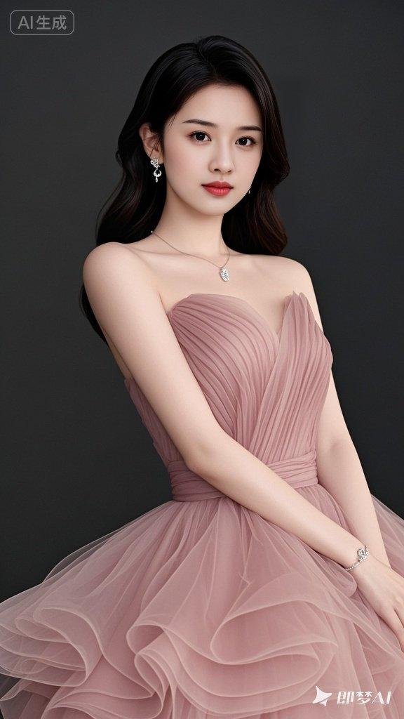 一位女子散发着优雅与甜美的气息。她的长发自然垂落,为整体造型添了几分柔美与风情。