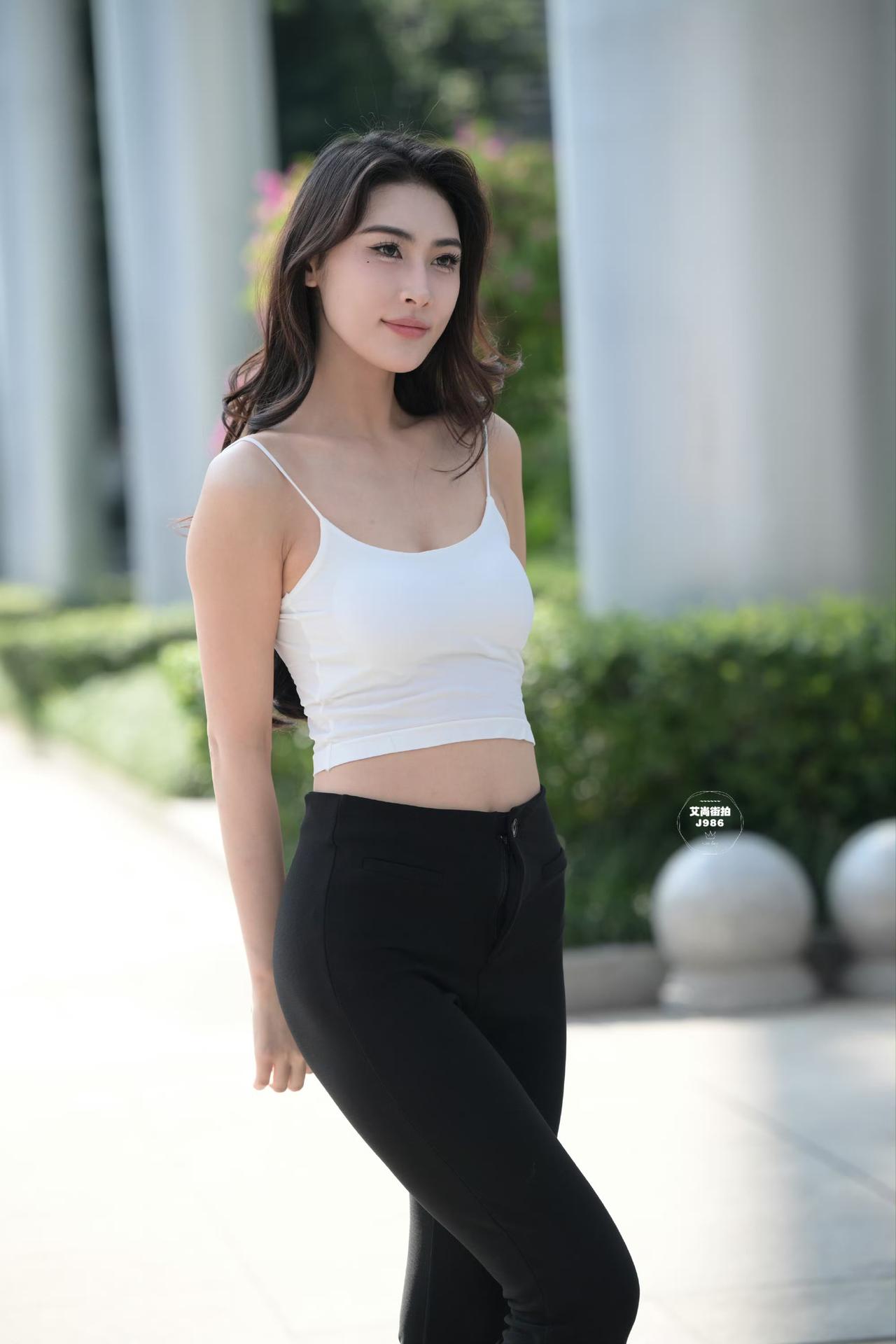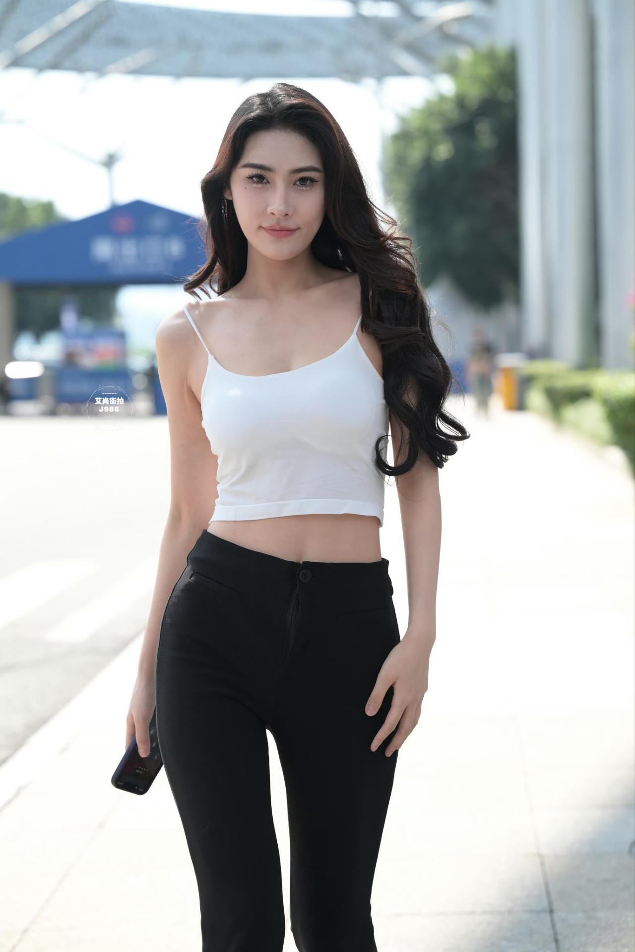 白色吊带搭黑色休闲裤永不过时的穿搭吊带长裤穿搭 时尚穿搭,今天出门穿什么?